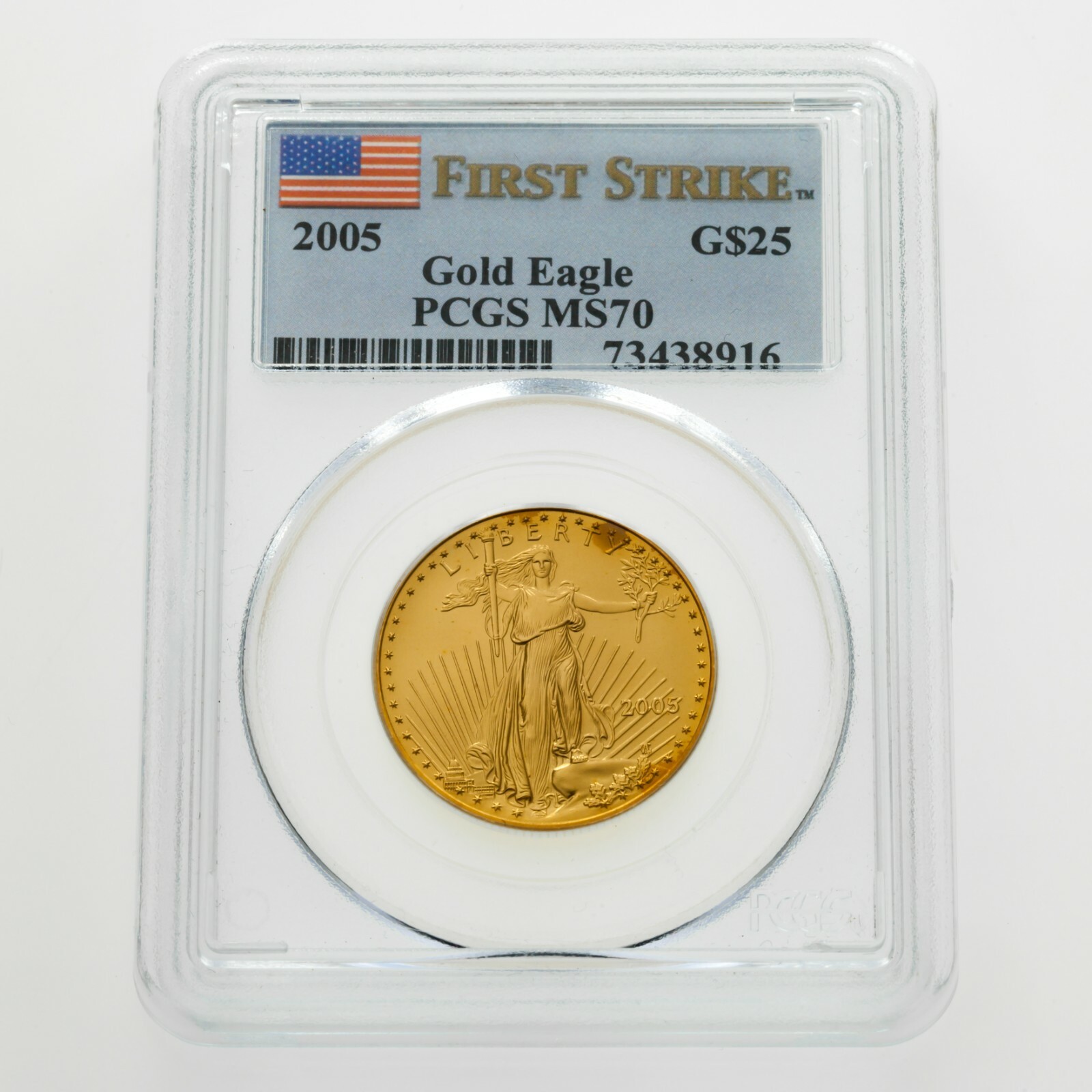 2005 G$25 1/2 Oz. Oro American Eagle Valutato Da PCGS Come MS-70 First Strike