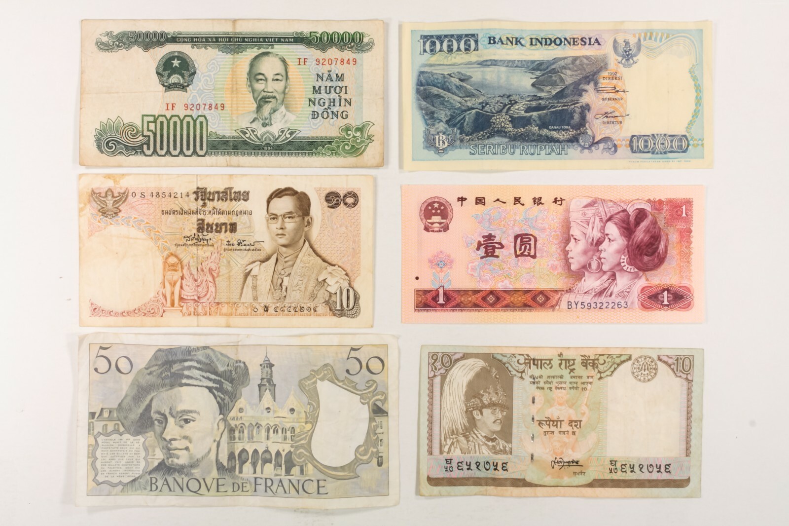 50 World Banknotes. Miscellaneous Europe, Asia, Central South America Miscellaneous Europe, Asia, Central and South America. Uncirculated to well used. Some going back to the 1920's. Visit Our Store: Continental Coin and Jewelry (Contact us for payment methods to pay on pickup.) *The customs requirements for each country, including all import duties, taxes, and fees are the responsibility of the buyer. All international packages will have the required customs declaration and value of order. California buyers: 9.5% sales tax will be added. Returns policy: Your continuing satisfaction is very important to us. We offer a 30 day money back return policy. If you are unhappy with your purchase for any reason, please notify us so that we can begin the returns process. Reference Item