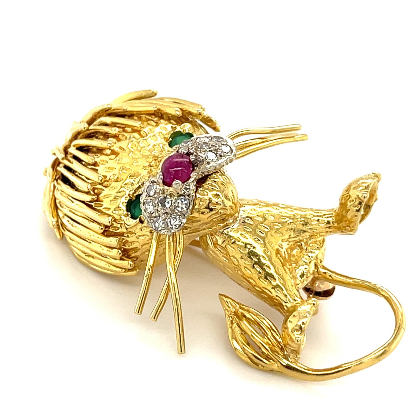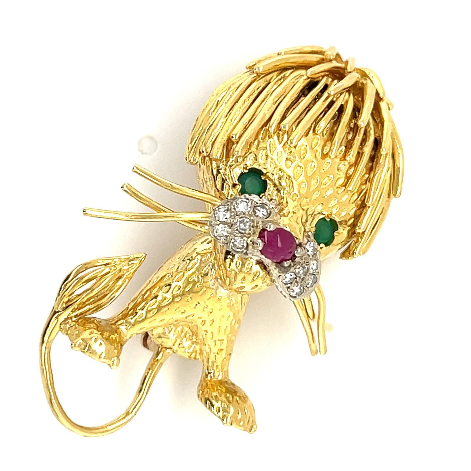 Features Melee Diamonds, Ruby Cabochon Nose, and Emerald Eyes