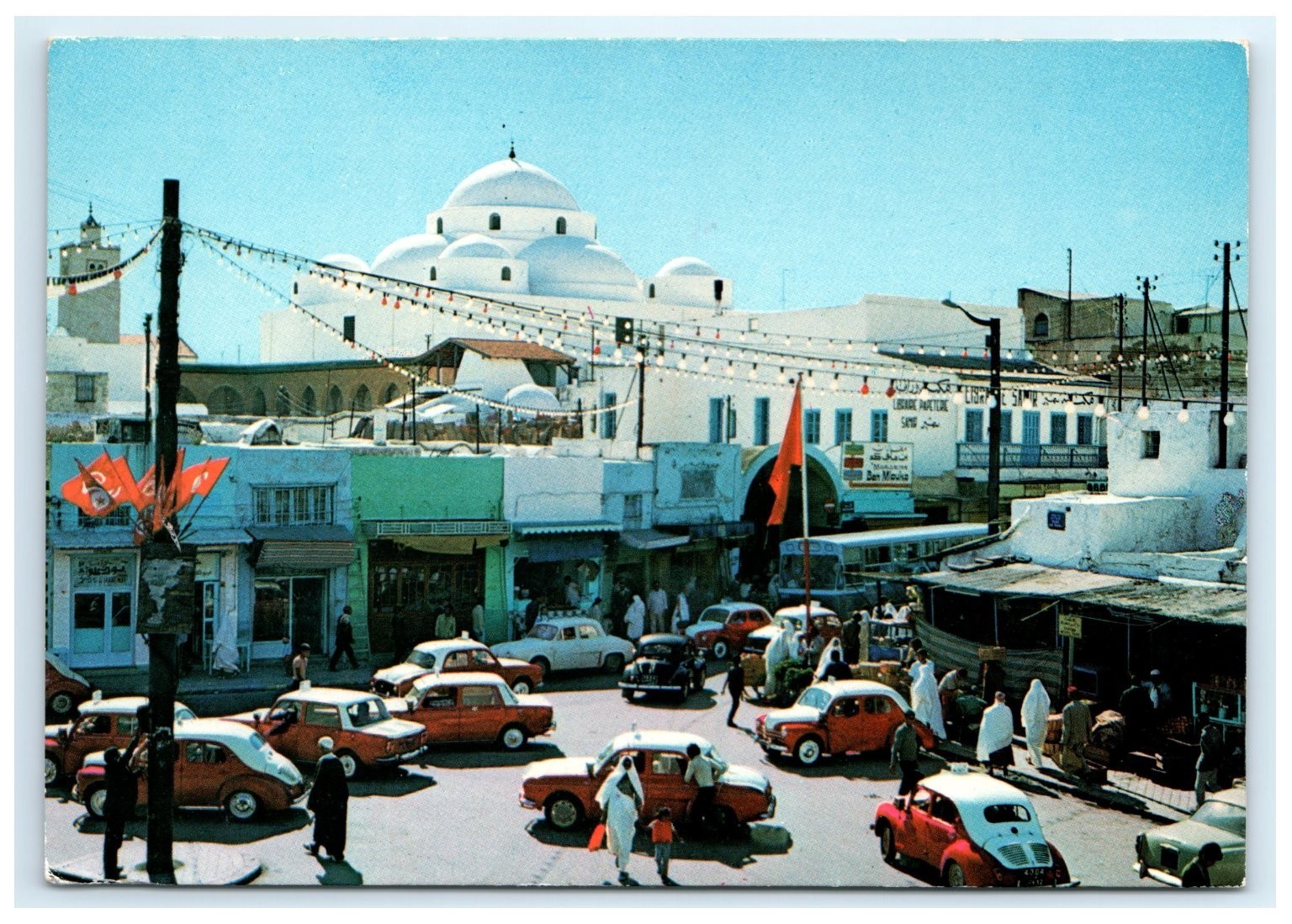 Vintage Bab Souika Tunis Market Mosque Street View Cars Postcard