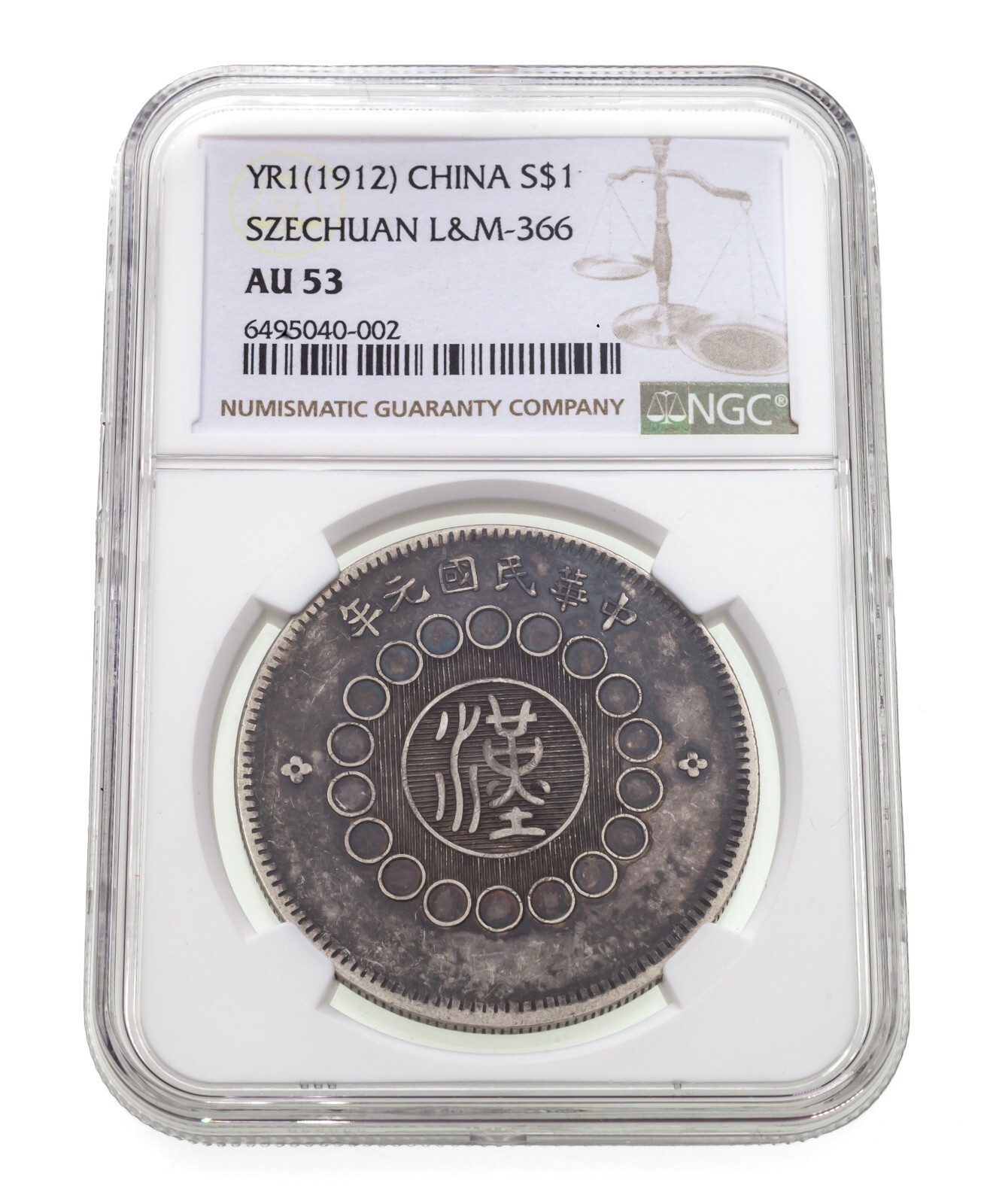 Anno 1 (1912) Cina S $ 1 dollaro Szechuan L M-366 classificato da NGC come AU53!