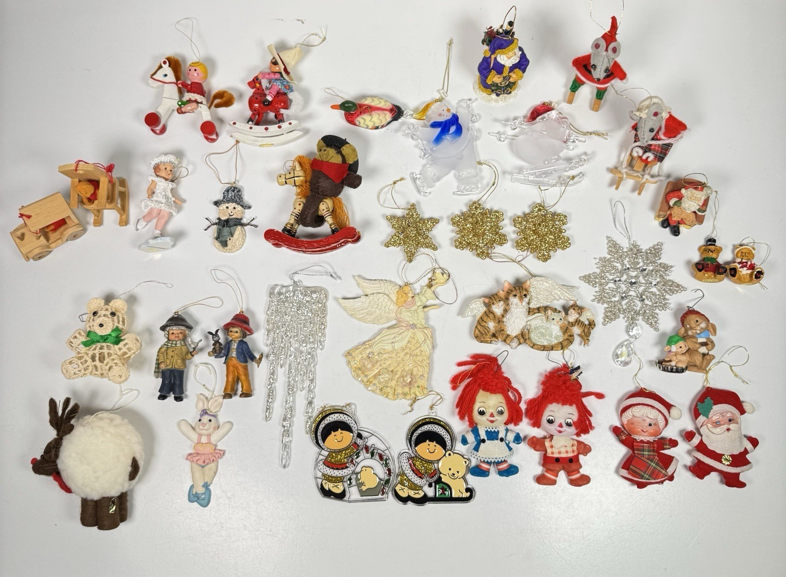 Christmas Tree Ornament Decorations Glass Wood Plush Toy Lot Of 30+ Vintage