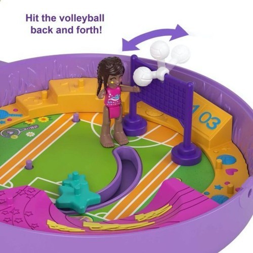 Get ready for Tiny Sports Adventures with Polly Pocket! Perfect for play at home or on the go, this Soccer Squad compact has a soccer ball design featuring cute sunglasses on the exterior filled with shakable glitter. Open the compact to reveal an exciting sports-themed adventure with 5 surprise and delight features, 12 accessories (some with a Pop Swap peg feature) and 2 micro dolls. Discover and play out the storytelling fun by pegging one of the dolls to the rock climbing wall, fold down the swimming pool to do laps, shoot basketball hoops, move the volleyball back and forth over the net and open the cooler for a treat. Peg pieces into different areas of the compact for endless play possibilities! The compact also comes with a wristlet strap so kids can take it on the go for fun Polly Pocket adventures anytime, anywhere! Colors and decorations may vary. makes a great toy for ages 4 years old and up.