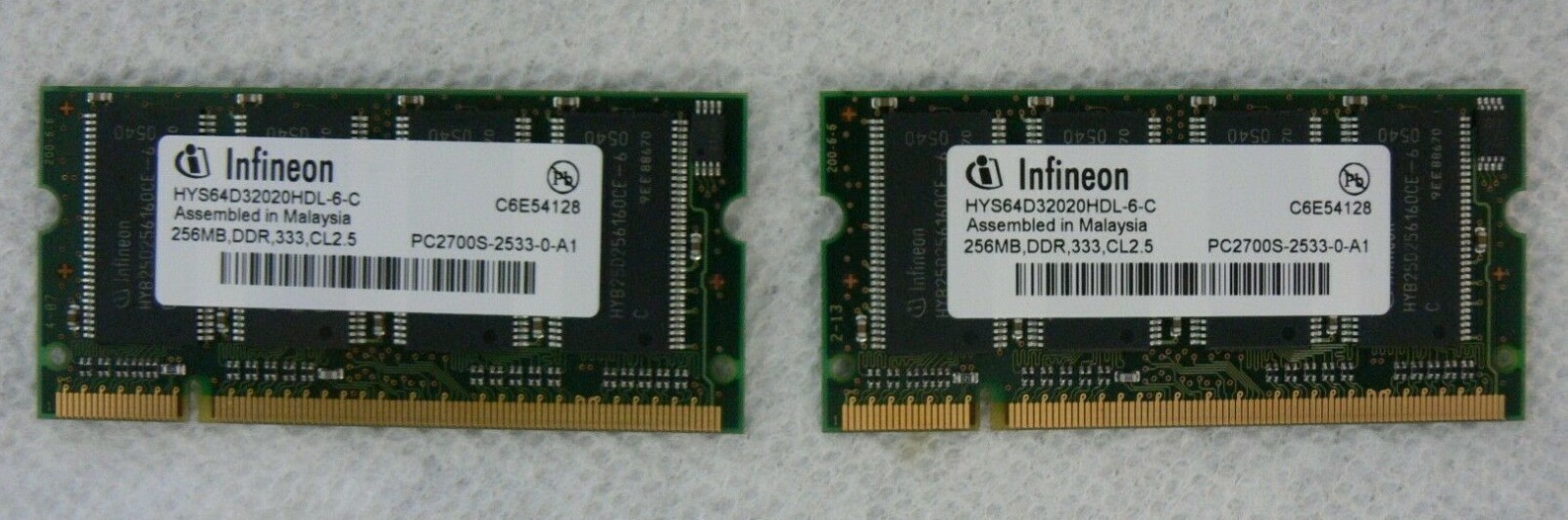 2 TWO 256MB 2RX16 DDR 333 PC2700 DDR-333MHZ 200PIN SODIMM NON-ECC DUAL RANK 16X16