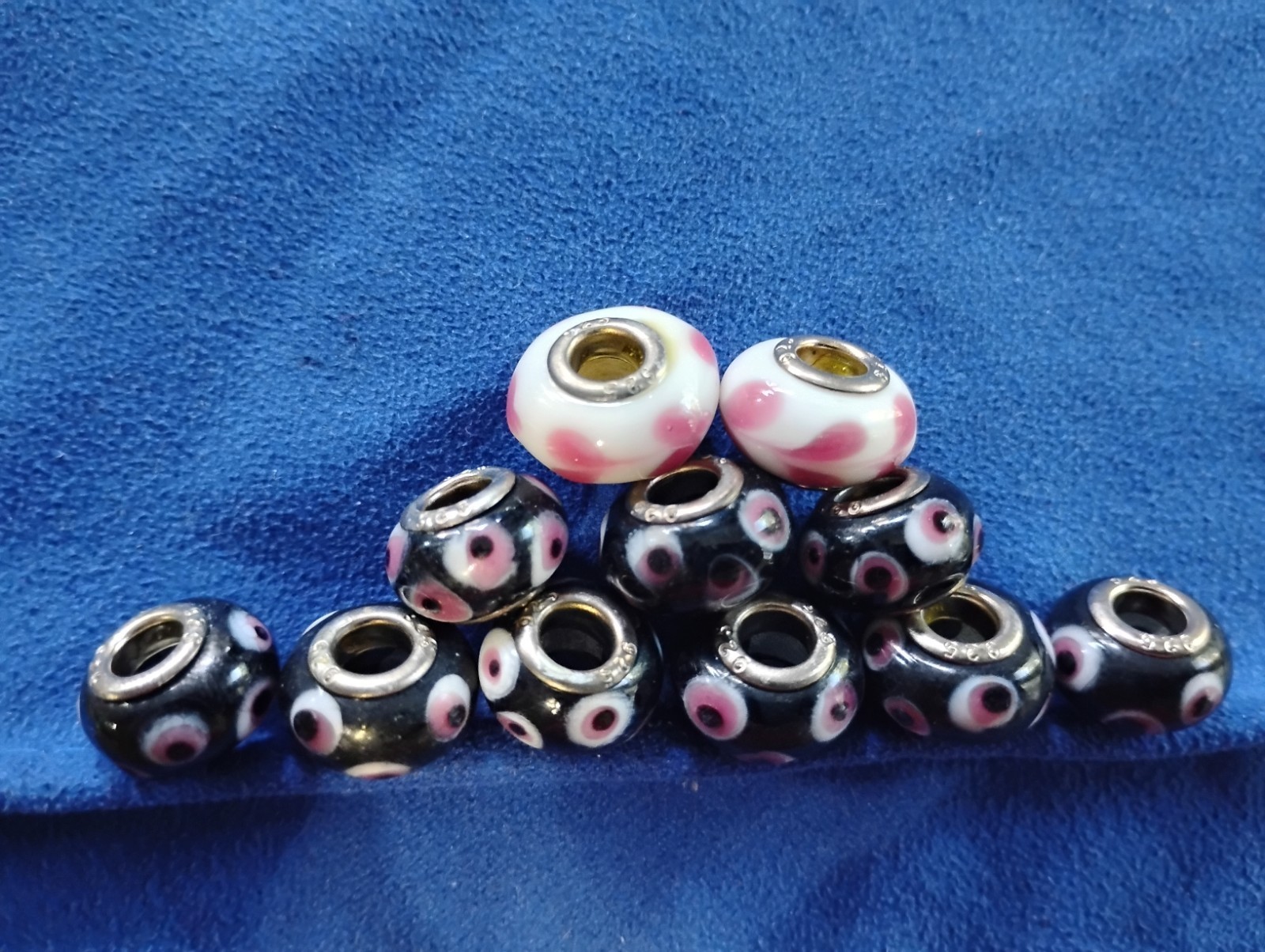 925 Sterling Silver 11 Piece Glass Bead Sliders Charm For Snake Style Or Pandora style necklace or bracelets