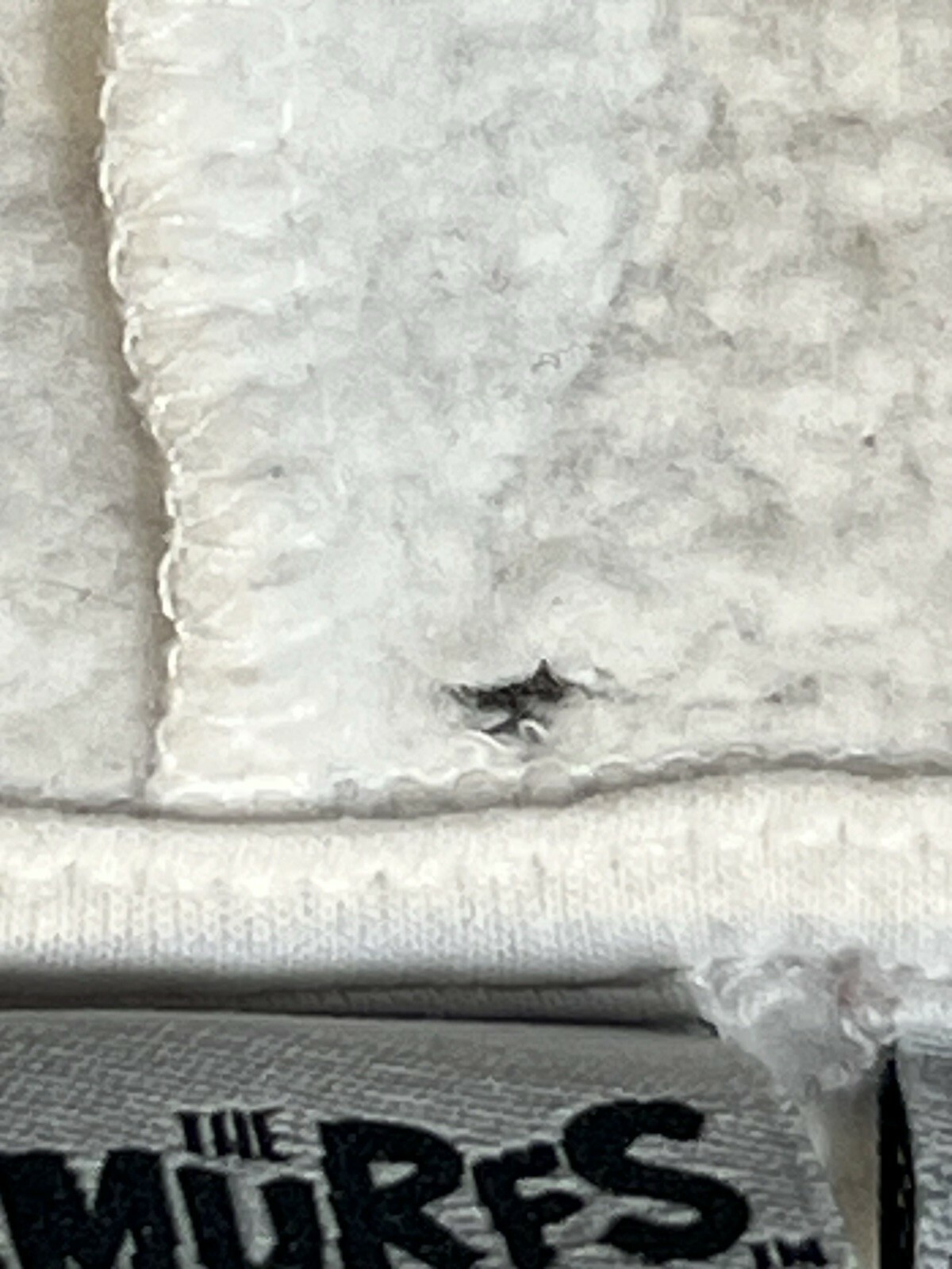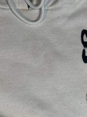 Please Note: There is a small hole on the back side of the neck where the hood meets the sweatshirt which I?ve photographed from both sides of the hoodie. There is also a light stain on the front which I show in a photo.