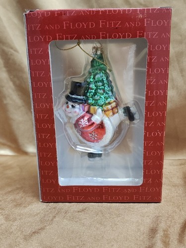 Fitz And Floyd Skating Snowman Christmas Ornament 19-1641 Boxed 5.5 in