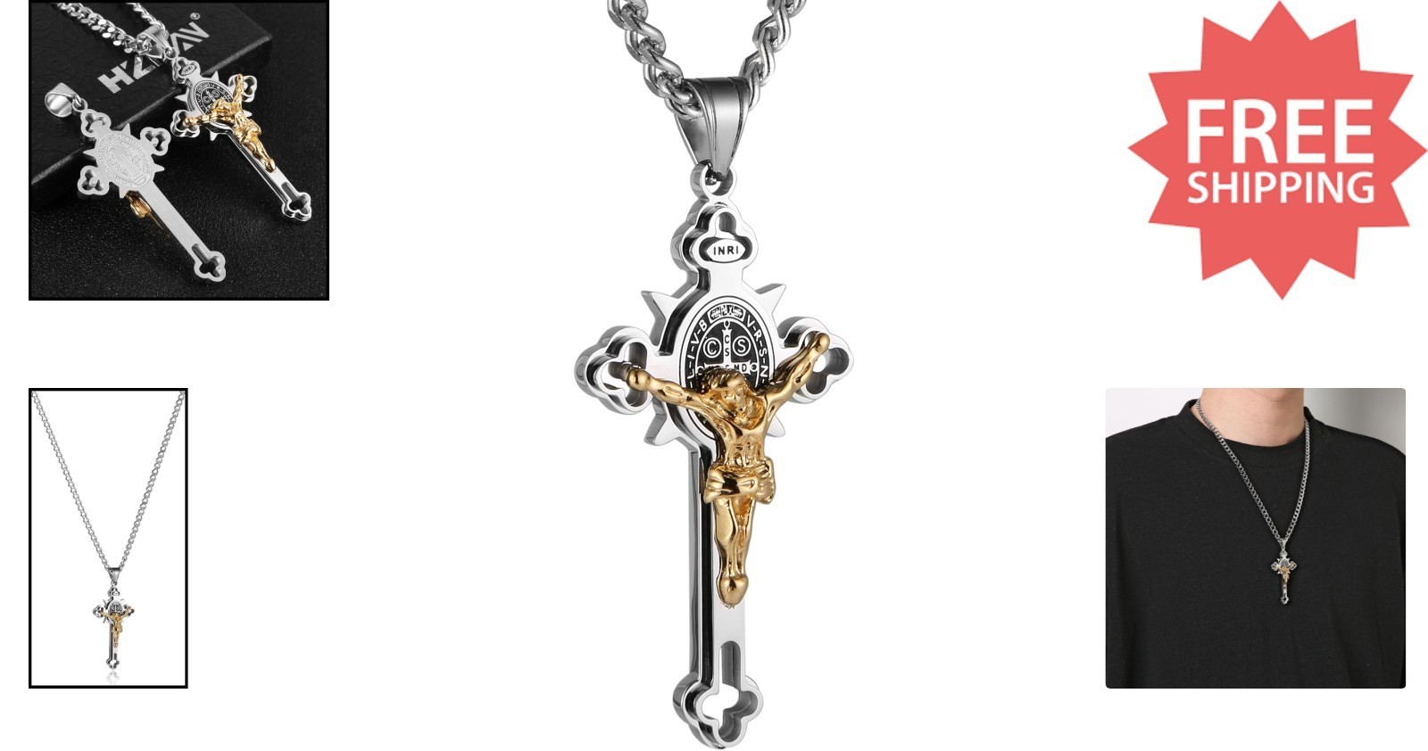 Celebrate faith and tradition with our classic St. Benedict Medal necklace. Crafted from durable stainless steel, this pendant features the revered icon believed to ward off evil, making it both a spiritual symbol and a statement piece. The pendant measures 6.4 x 3.2cm (2.51 x 1.25 inches), complemented by a 22-inch link chain with a 2-inch extender for perfect fit. Whether as a meaningful gift or a personal talisman, its timeless design carries deep spiritual significance. If you have any questions, our dedicated customer service team is here to assist. To ensure fast and reliable delivery, we work with multiple fulfillment partners and suppliers. Depending on availability and location, your order may ship from different warehouses or arrive in packaging that varies from item to item. Tracking details are typically provided shortly after shipment, and customer satisfaction remains our top priority. Please note that due to carrier policies and regional regulations, certain items may not be eligible for delivery to specific states or territories.