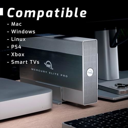 Product description: The Mercury Elite Pro is up to the task with its rugged, solid aluminum enclosure holding a high performance 3.5-inch 7200RPM hard drive with up to 16TB capacity. It can be used for a variety of personal and business needs including: Pro-level video editing projects Time Machine and File History backups of important business data and irreplaceable personal photos Consolidating files from multiple smaller drives to a single location for faster, more convenient access Migrating data from an existing machine to a new computer Expanding game storage of console gaming systems. Freeing up space on a computer's internal drive to improve performance. PURPOSEFULLY DESIGNED Offering an ideal blend of form and function, the Mercury Elite Pro?s fanless brushed aluminum chassis provides maximum heat dissipation to run quietly cool while the shock isolation design keeps the drive ? and your data ? safe and protected. It fits discreetly on any desktop with the included vertical orientation stand or place it horizontally with the included non-skid rubber feet and even stack multiple units to create a capacity ?tower of power?. The Mercury Elite Pro isn?t just all work and no play. Besides saving and backing up computer data or functioning as a workhorse drive on set or in the edit suite, it can be used to watch videos, listen to music, and view pictures through your gaming console or directly attached to your Smart TV.2 We understand having confidence in gear reliability is paramount to all tech users. That?s why every Mercury Elite Pro pre-configured solution undergoes a multi-step performance certification prior to shipping. This ensures it arrives operating properly and immediately ready for demanding use.