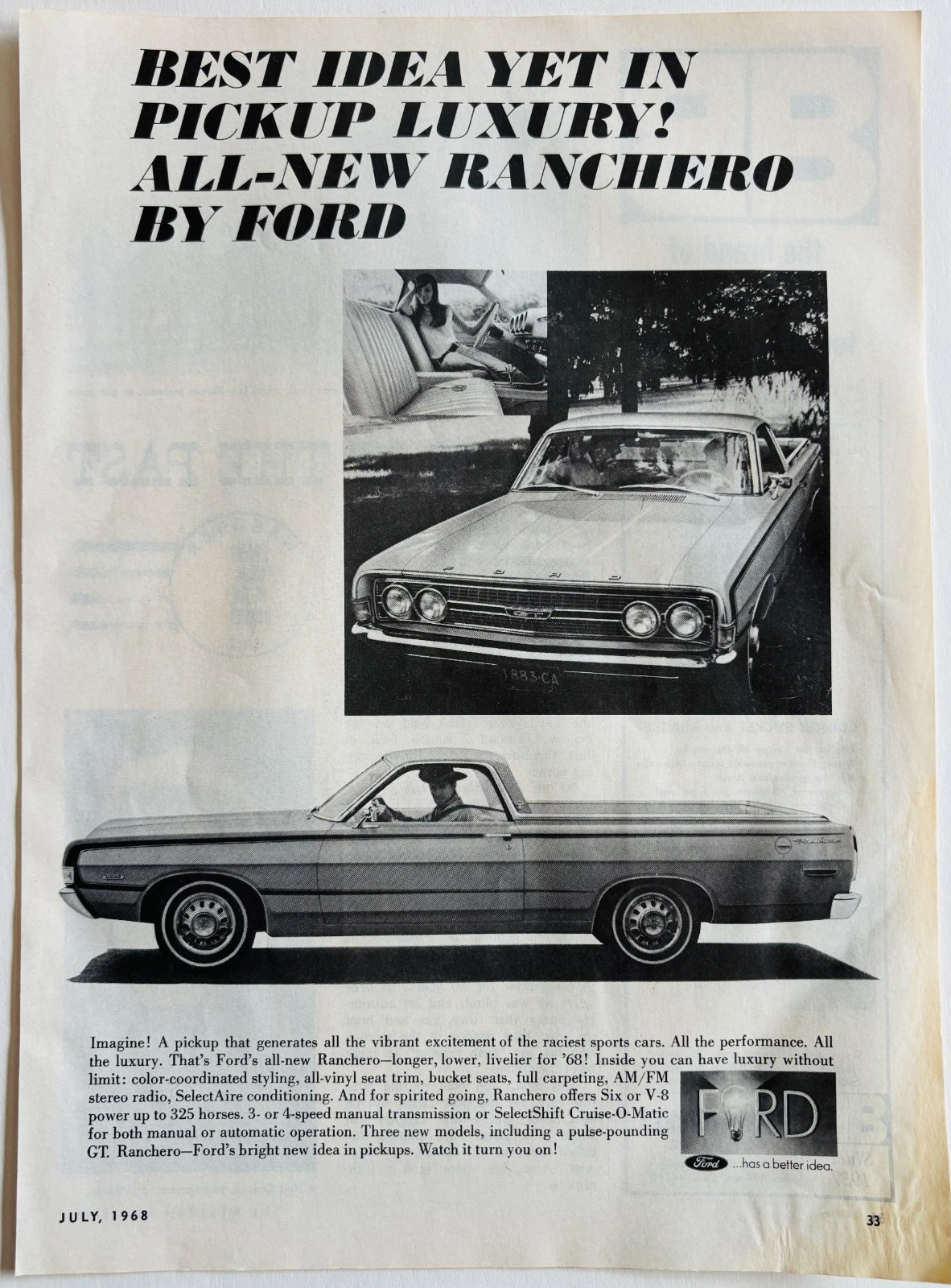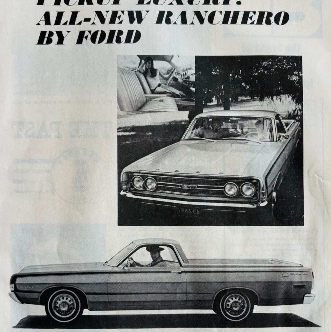 1968 Ford Ranchero Car Pickup Bed Advertisement Automobilia Vintage DWP9C