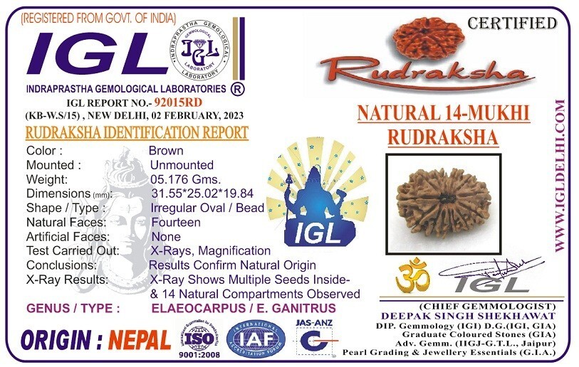 Super Collector 14 Mukhi Rudraksha - 31.55 mm - IGL Certified