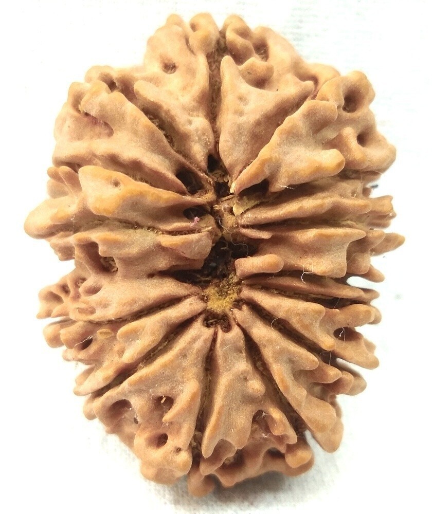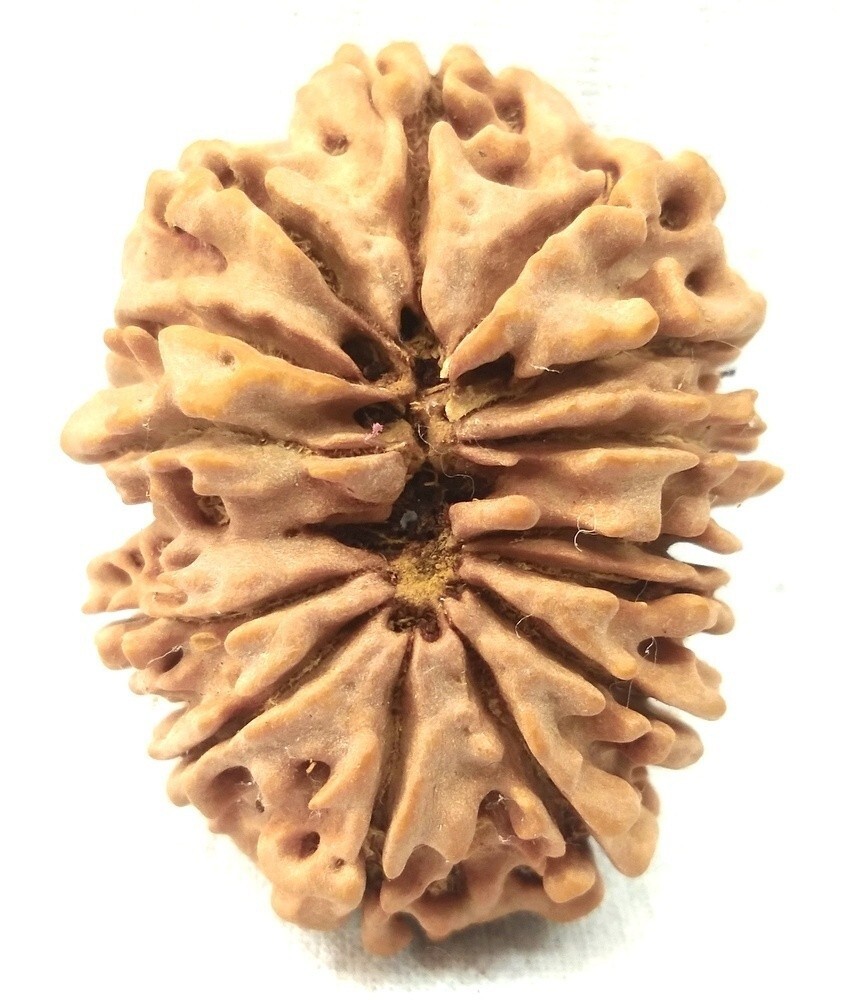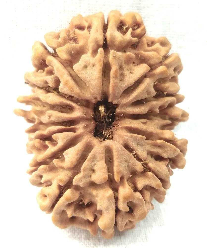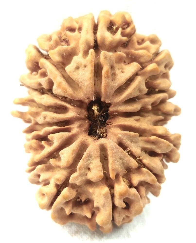 14 Mukhi Rudraksha is found most rarely and it pleases Lord Shiva to give the wearer His company. It is the most precious divine thing Deva Mani. It awakens the sixth sense organ by which the wearer foresees the future happenings. Its wearer never fails in his decisions. Its wearer gets rid of all the calamities, miseries, worries. It provides the wearer safety and riches. It is a very powerful antedote for Saturn miseries and provides miraculous cures to several ailments. It is recommended to be worn on chest as a necklace, on forehead on third eye region or on right arm. It helps in achieving moksha (salvation) from the world which is the essence of human life. The wearer of 14 mukhi rudraksha becomes divine and becomes dear to Lord Shiva.