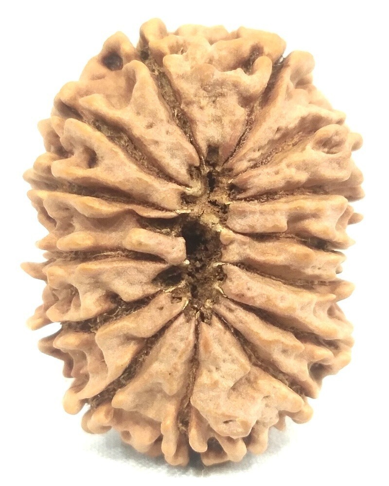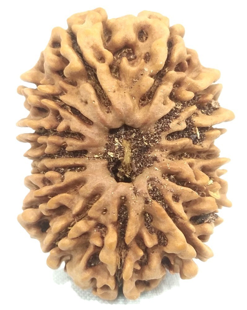 14 Mukhi Rudraksha is found most rarely and it pleases Lord Shiva to give the wearer His company. It is the most precious divine thing Deva Mani. It awakens the sixth sense organ by which the wearer foresees the future happenings. Its wearer never fails in his decisions. Its wearer gets rid of all the calamities, miseries, worries. It provides the wearer safety and riches. It is a very powerful antedote for Saturn miseries and provides miraculous cures to several ailments. It is recommended to be worn on chest as a necklace, on forehead on third eye region or on right arm. It helps in achieving moksha (salvation) from the world which is the essence of human life. The wearer of 14 mukhi rudraksha becomes divine and becomes dear to Lord Shiva.
