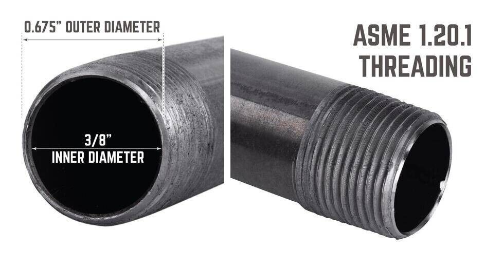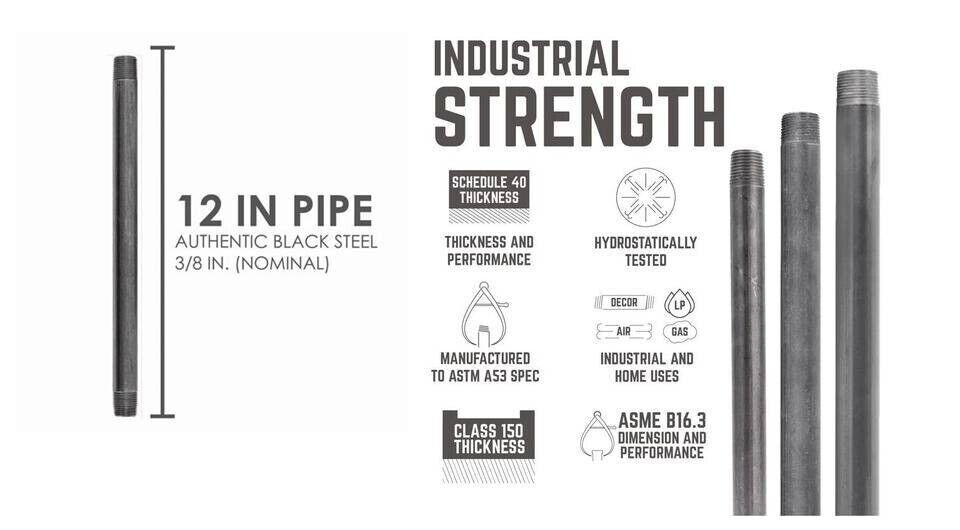 Pipe Nipple 12" L X 3/8" MIP each X 3/8" D MIP Black Steel - STZ 308U38X12
