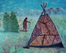 Painting Indian Teepee Original Bob Ross Style Signed Art Native By Carla Dancey