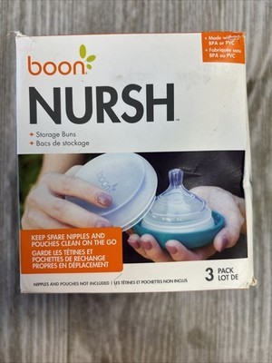 Boon Baby Bottle Storage Buns - Travel 3 Count (Pack of 1), Blue-white ~Open Box