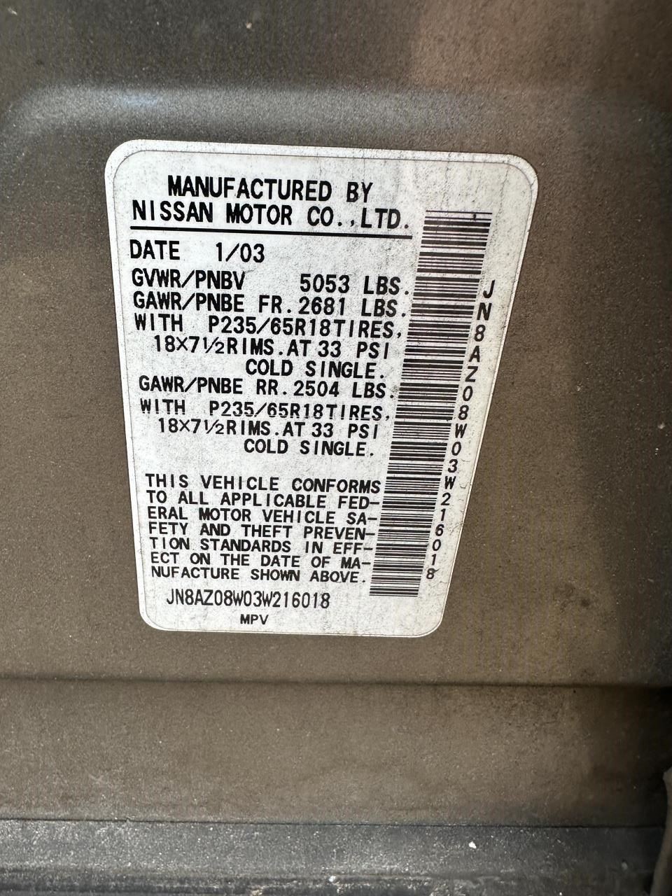 JN8AZ08W03W216018 |