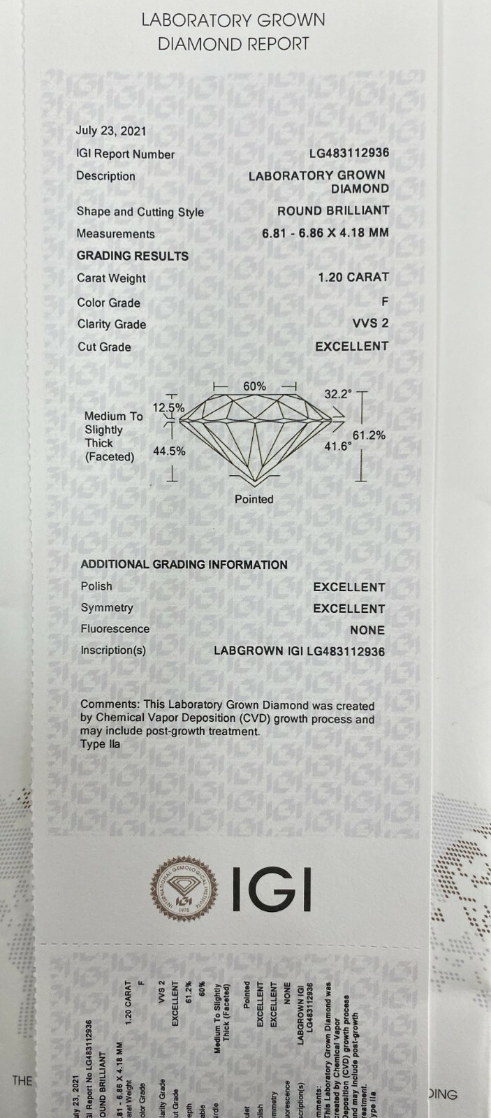 · 1.20 Ct Round Cut CVD Diamond F Color VVS2 Clarity