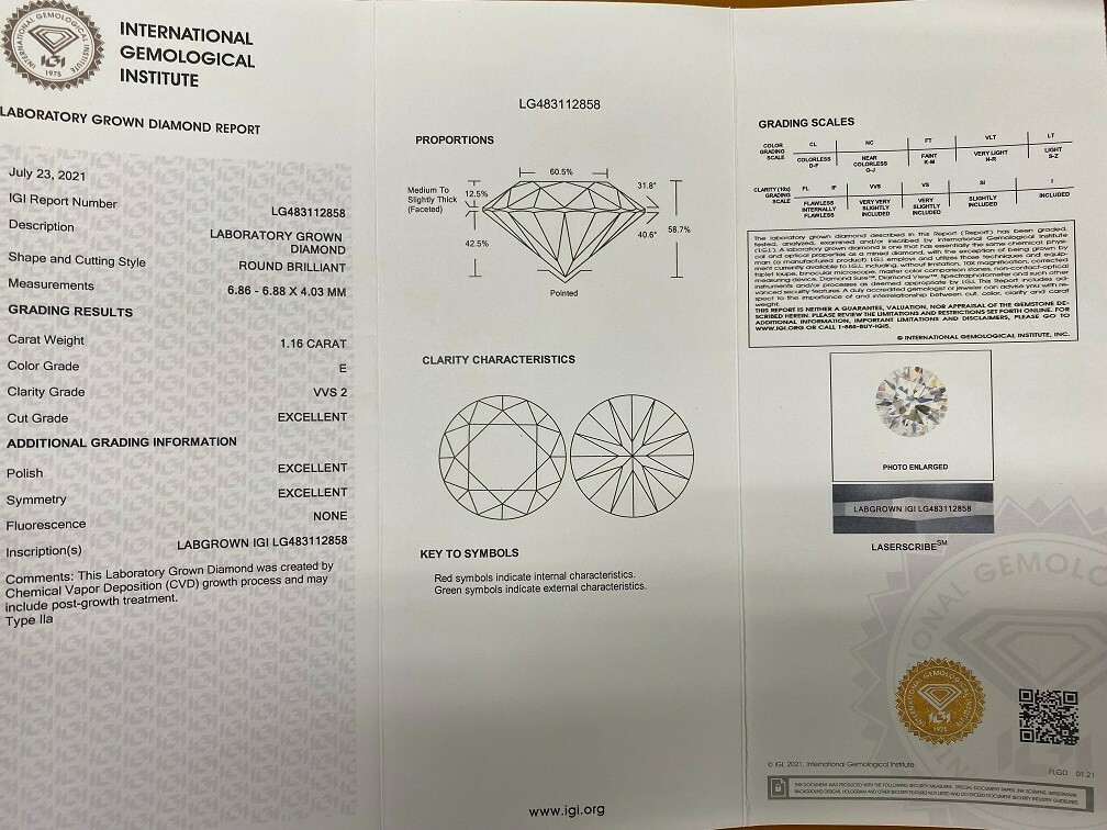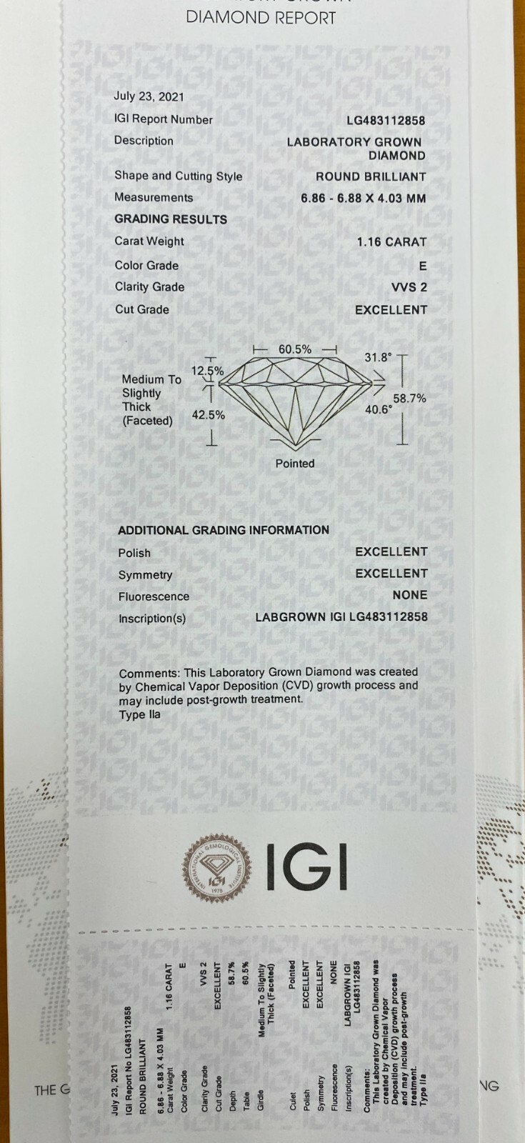 · Two matching CVD Lab Created Round Cut Diamonds w/ IGI Certificates