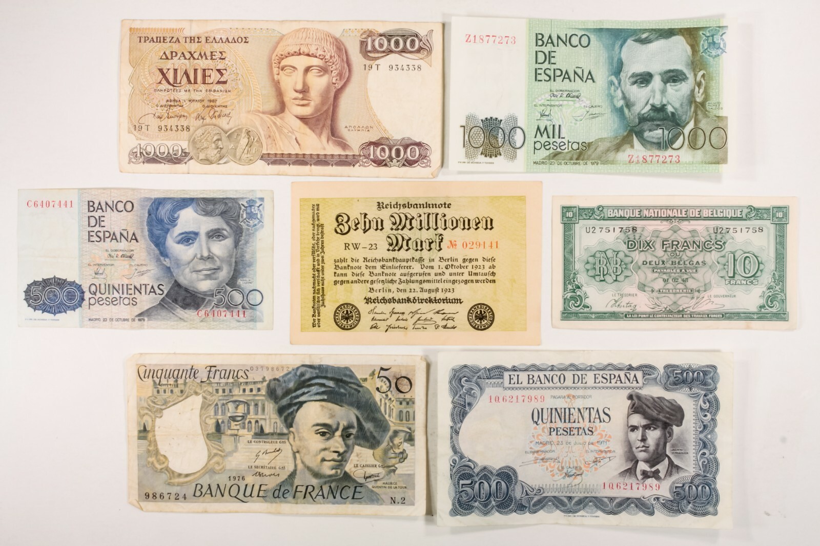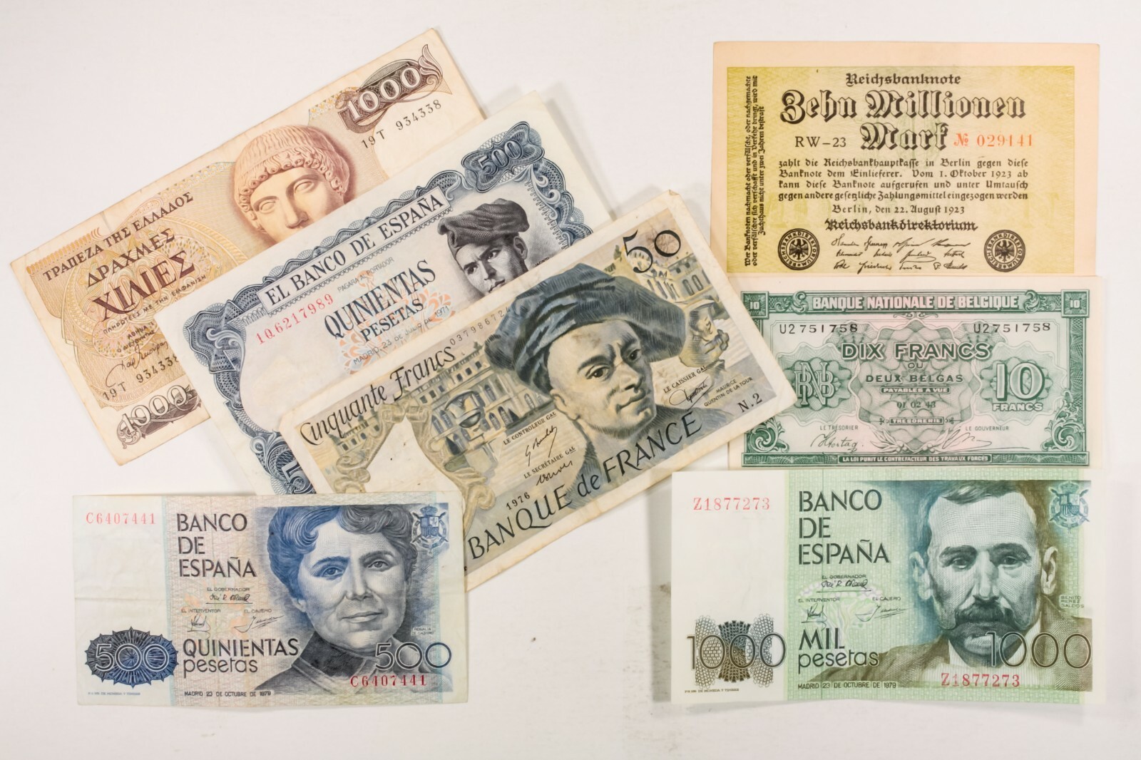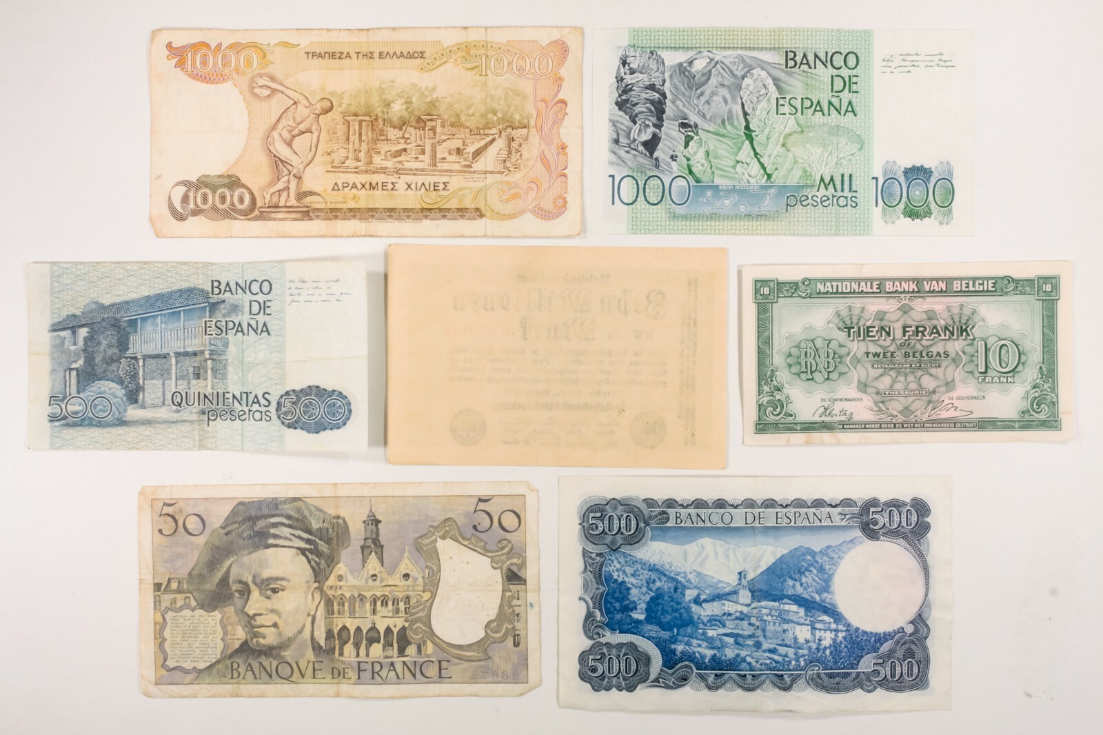Europe Notes. Spain, Greece, France, Belgium & Germany. 7 Note Lot.
