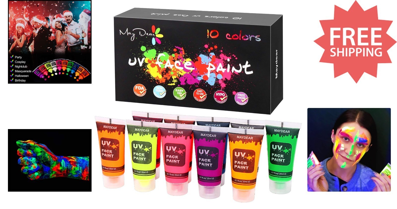 Vibrant 10 Colors UV Neon Face & Body Paint and 50 similar items