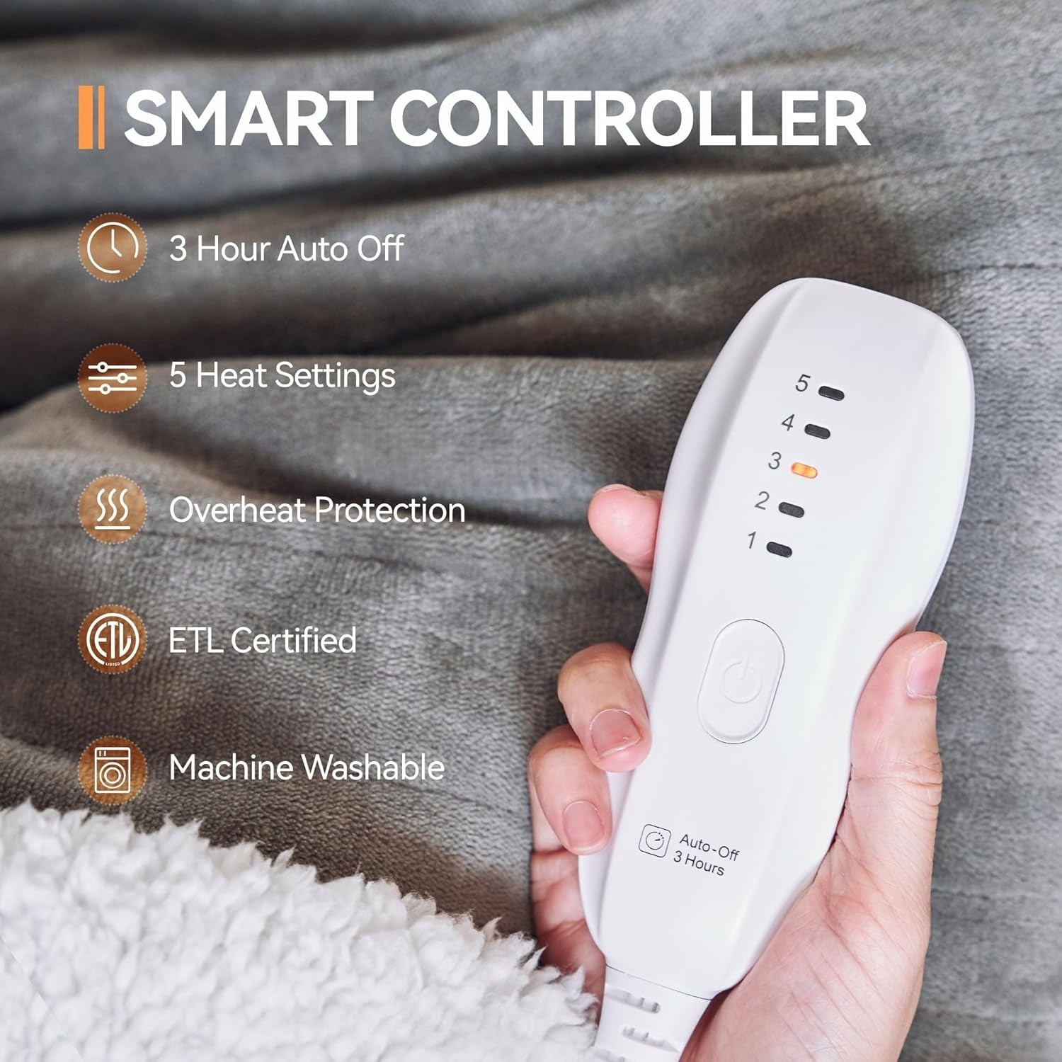 Certified Heated Blanket 50''x60'' - Overheating Protection and Soft Fabric