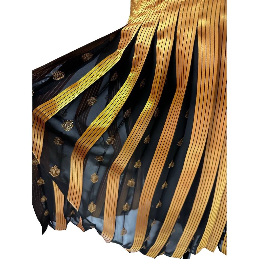 VTG 80s Raul Blanco Gold Black Metallic Pleated Dress Korea Sz M 38 Bust