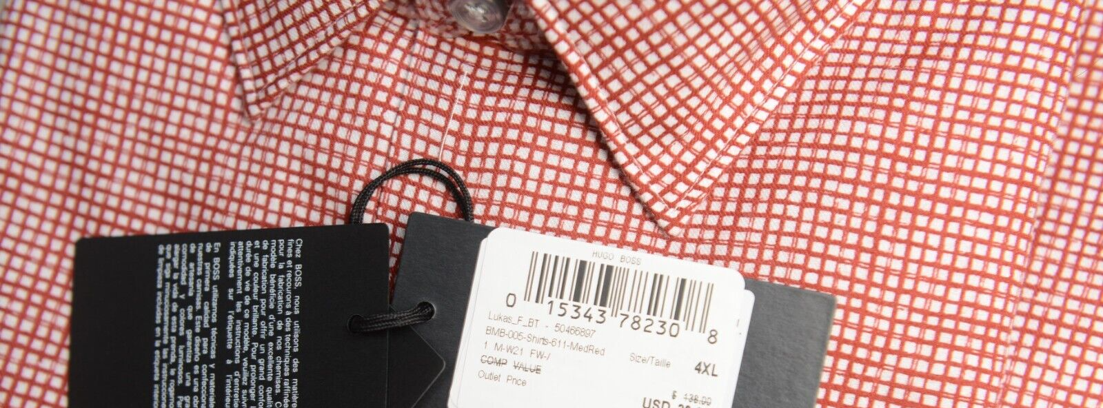 HUGO BOSS Homme Lukas Moyen Rouge Plaid Coton Affaire Décontracté Chemise Grand