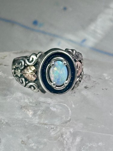 Black Hills Gold Ring opal leaves band size 7 sterling silver women men