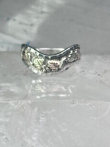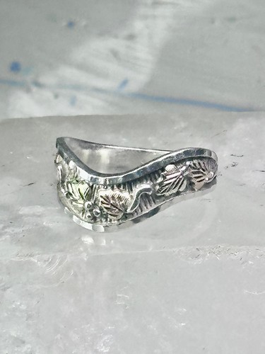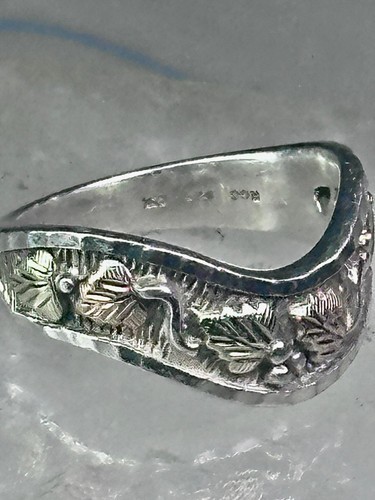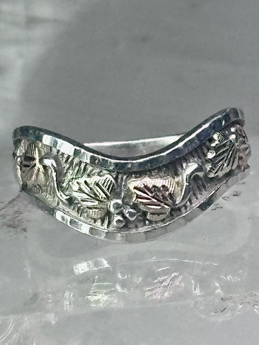 Black Hills Gold Ring leaves wavy band size 8 sterling silver women men