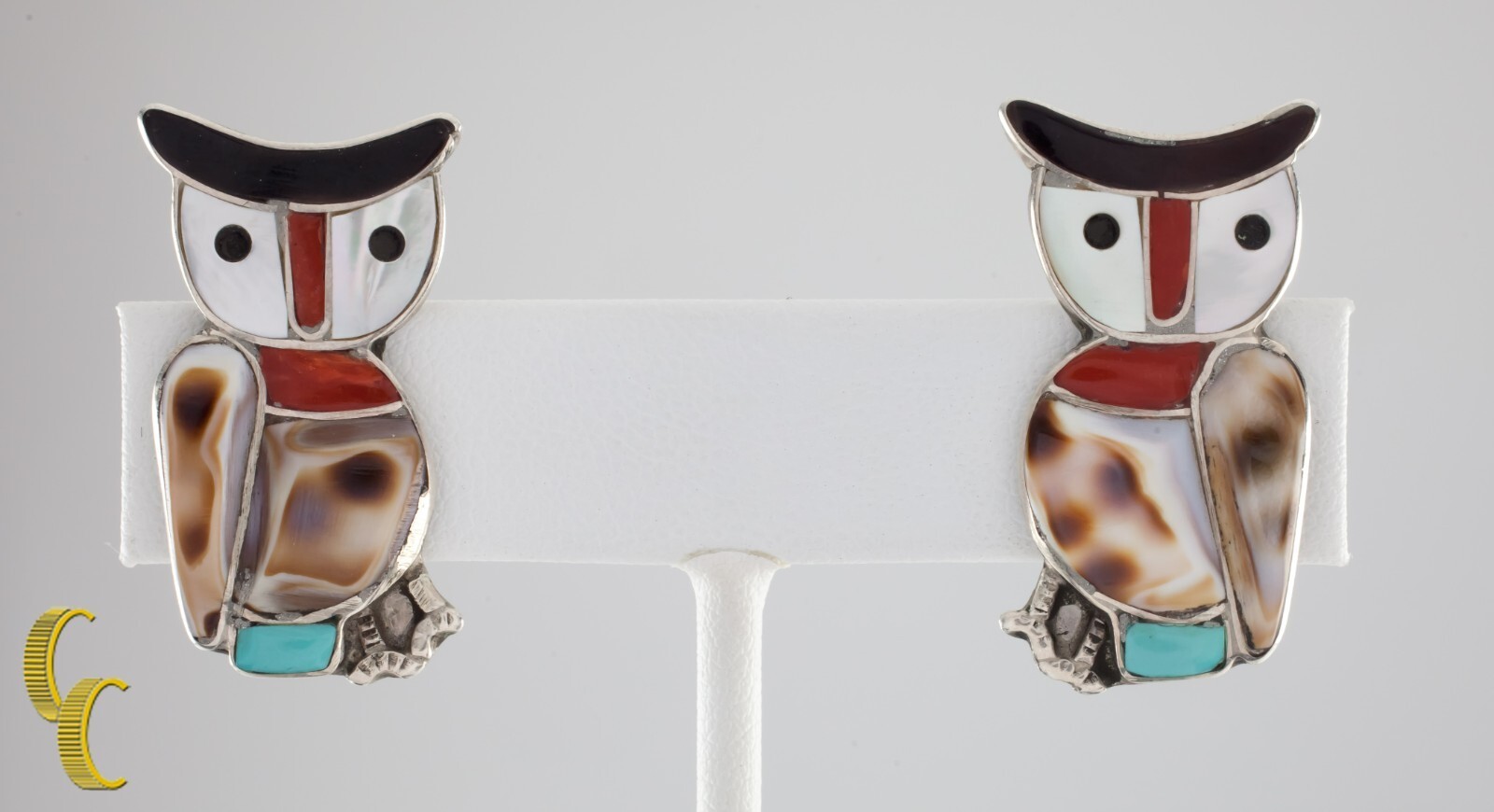 Sterling Silver Lapidary Inlay Owl Clip-On and 50 similar items