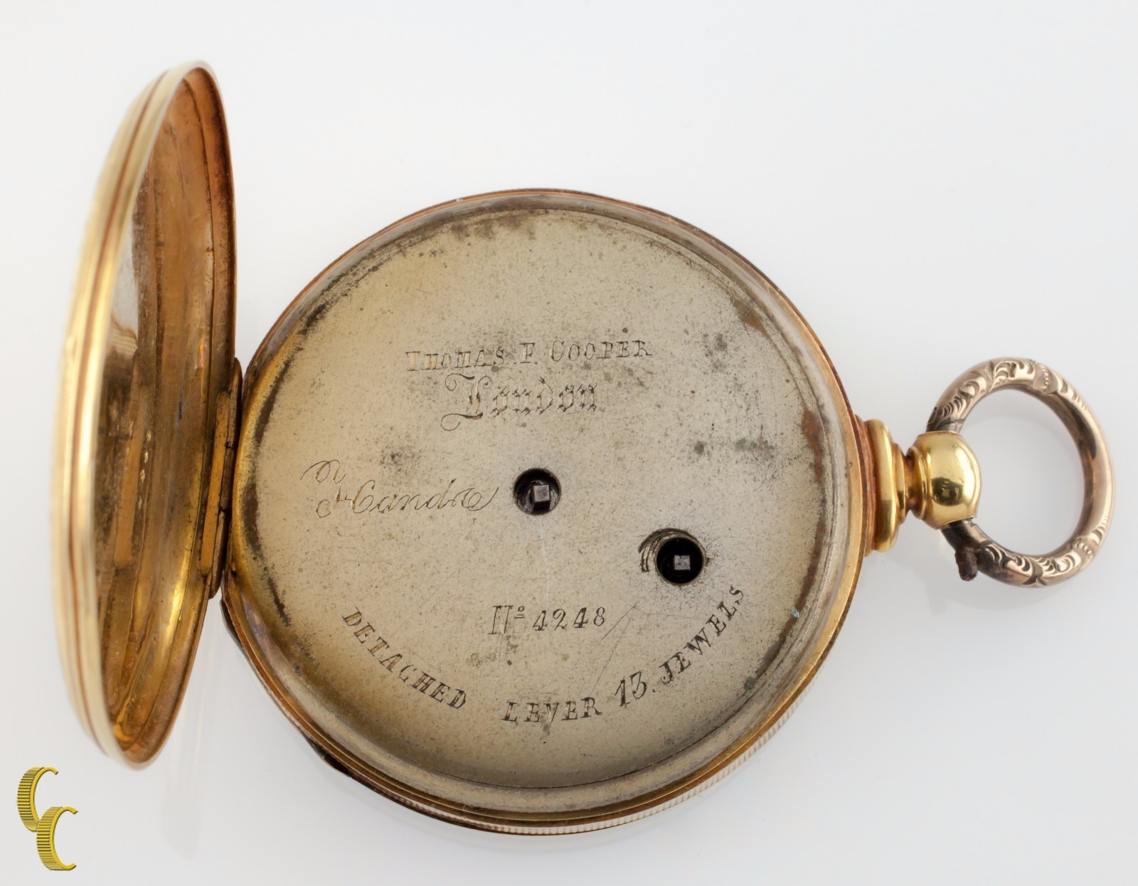 Thomas Cooper London Key Operated 18k Yellow Gold Pocket Watch 13 Jewels