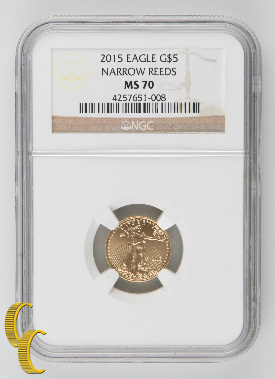 2015 $5 Oro 1/10 Oz Moneta American Eagle Narrow Reeds NGC MS-70 .900