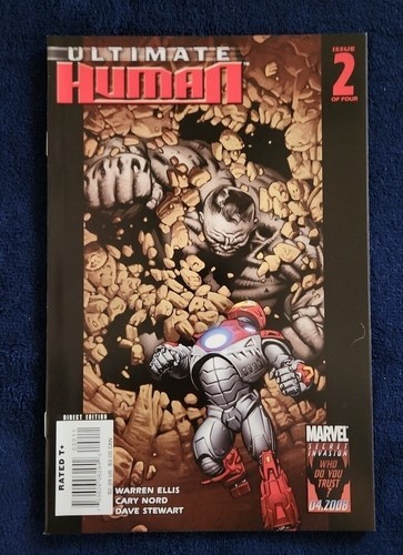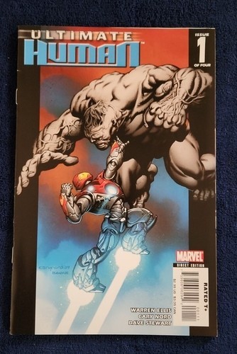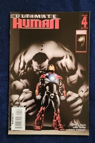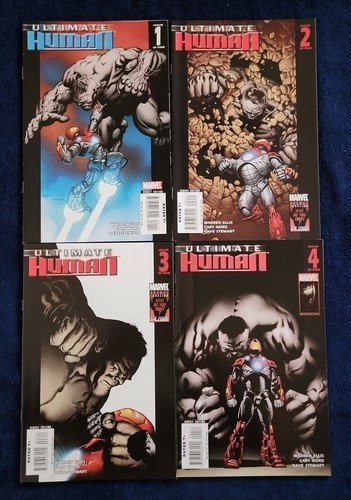 For sale is a complete set of Ultimate Human comic books, featuring Iron Man and Hulk in an epic showdown. This set includes issues 1-4, all first printings, and comes boarded for protection. The comic books are in excellent condition and are a must-have for Marvel (MCU) fans. Written by Warren Ellis and illustrated by Dave Stewart and Cary Nord, this series is perfect for collectors and fans of superheroes. Don't miss out on the chance to own this amazing set!
