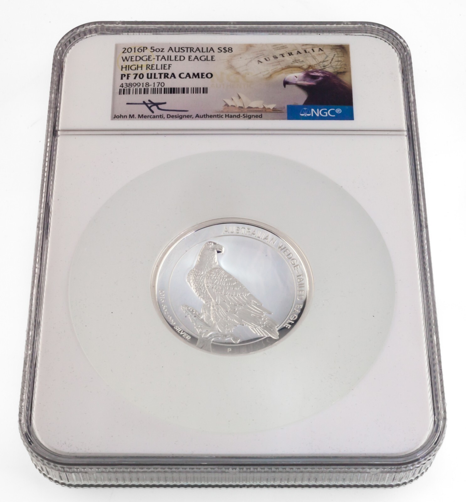 2016-P Australia S$8 Wedge-Tailed Eagle Silver 5 Oz PF70 Ultra Cameo Mercanti