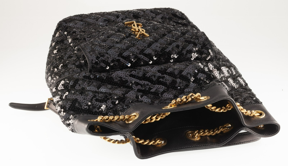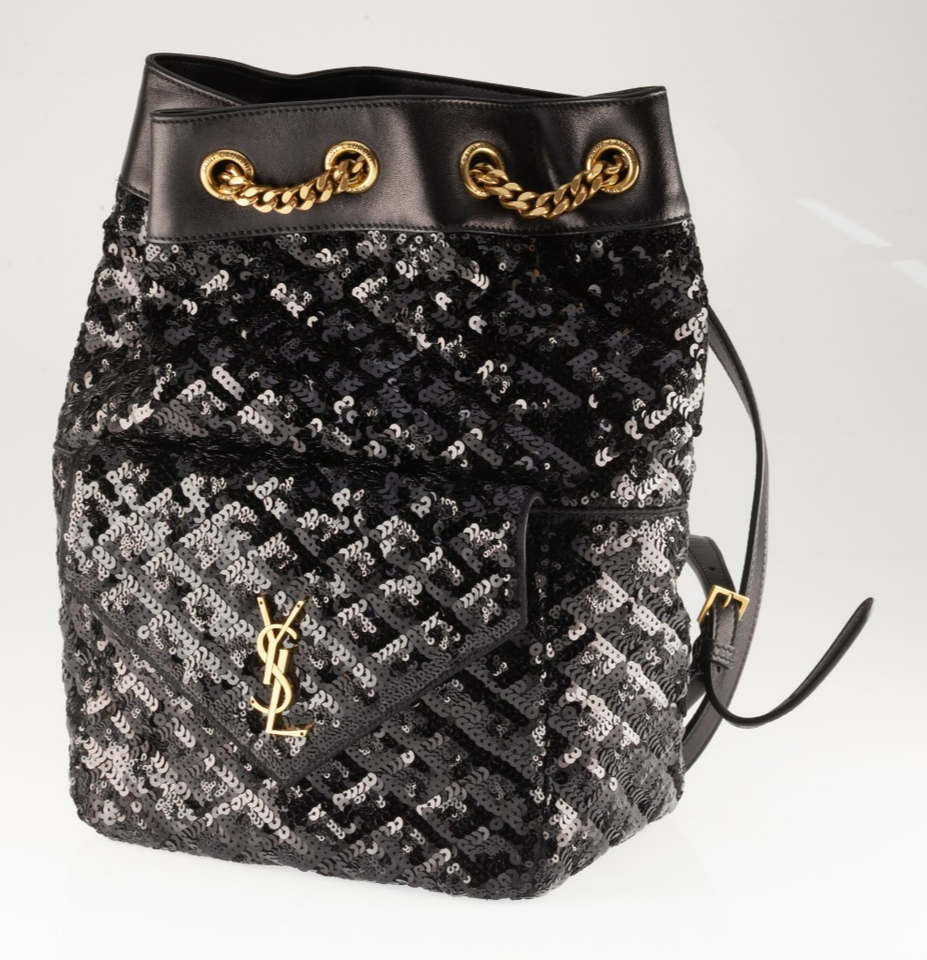 Authenticity Guarantee YSL Yves Saint Laurent Sequin Satin Chain Backpack w/...