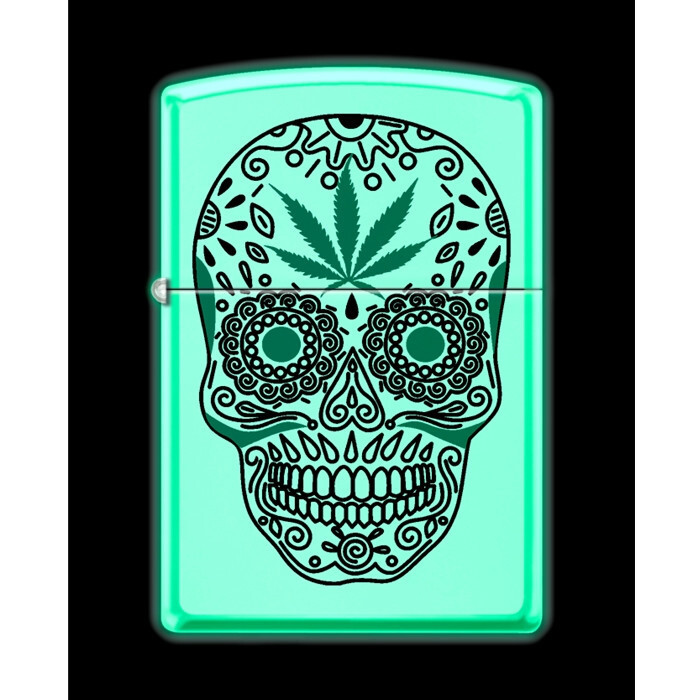 Zippo Lighter - Sugar Skull WHITE MATTE Glow in the Dark - 855963