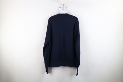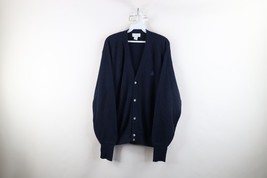 Vintage 90s Izod Mens Size Large Spell Out Knit Cardigan Sweater Navy Blue USA