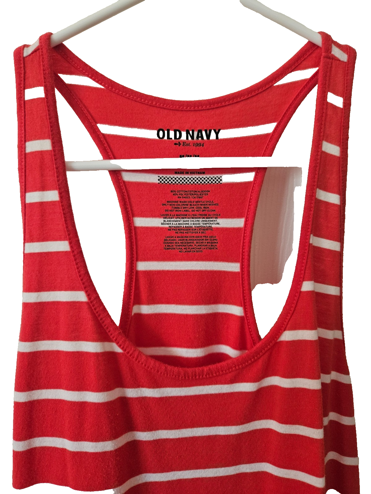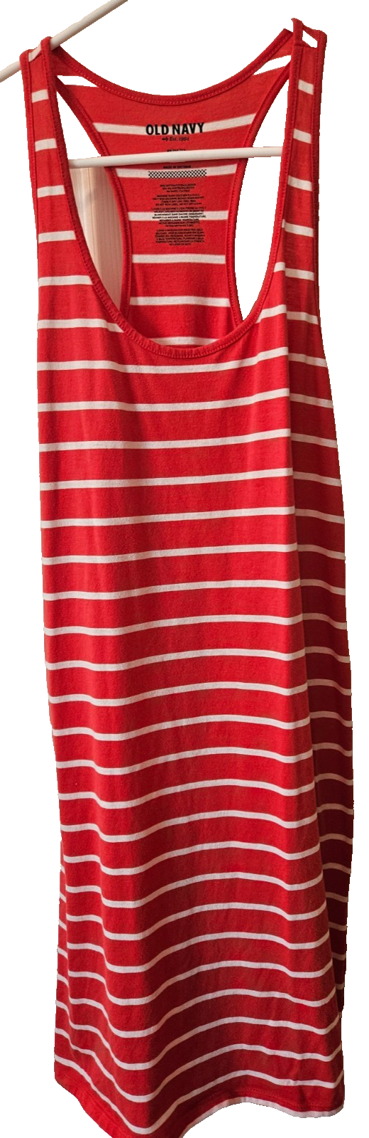 Old Navy Womens Tank Dress Size M Red / White Striped Cotton Polyester N/S NICE