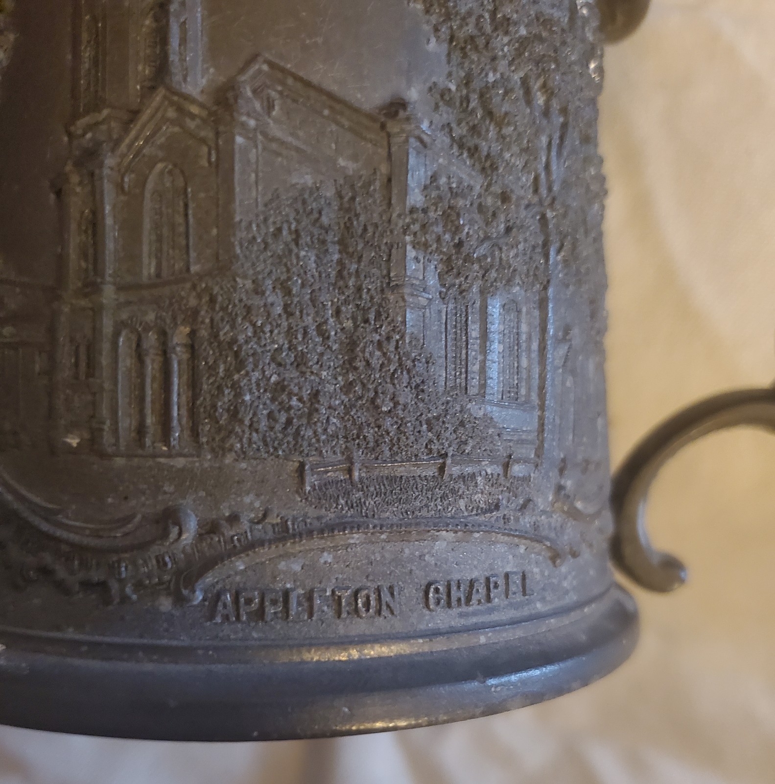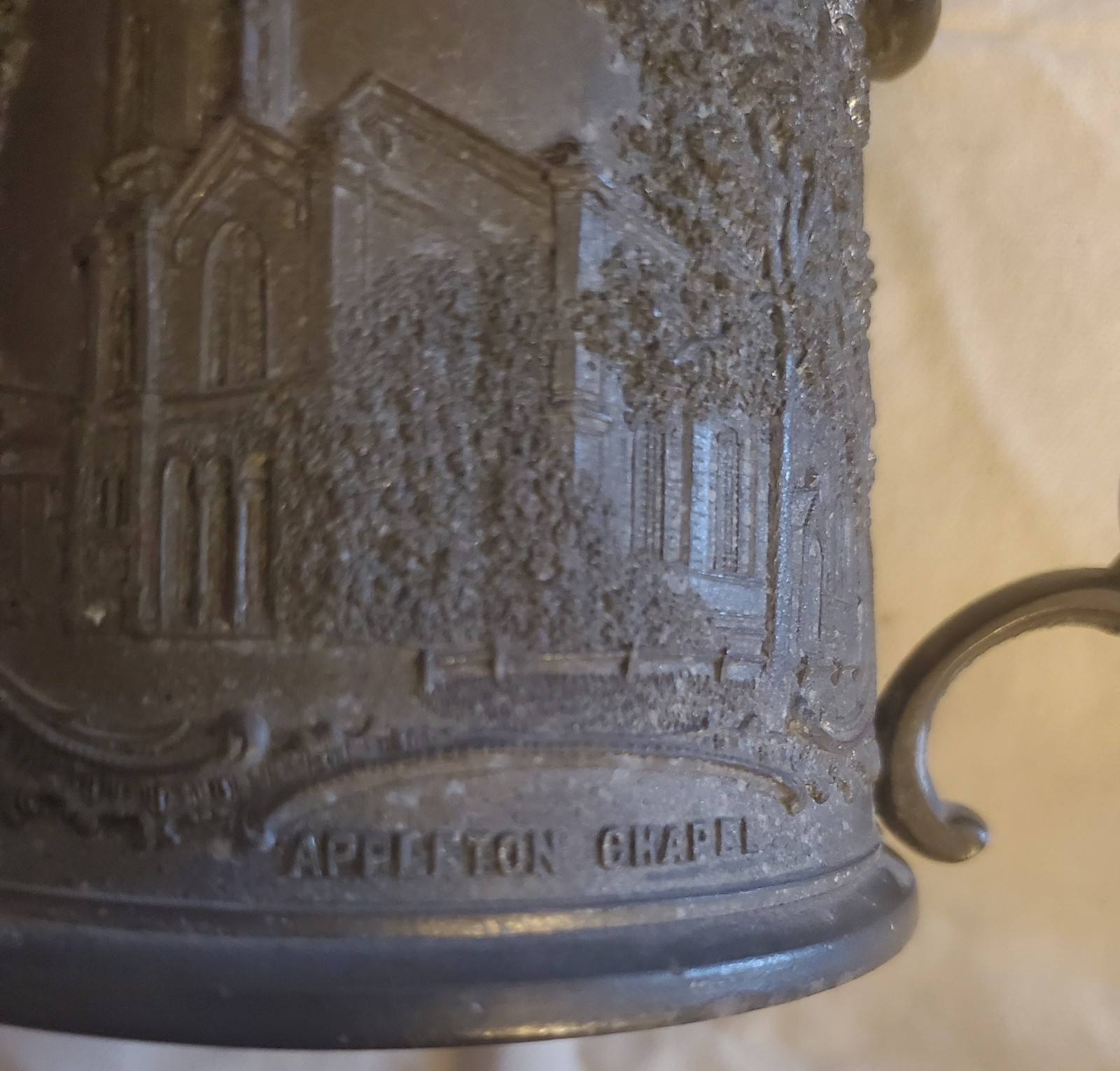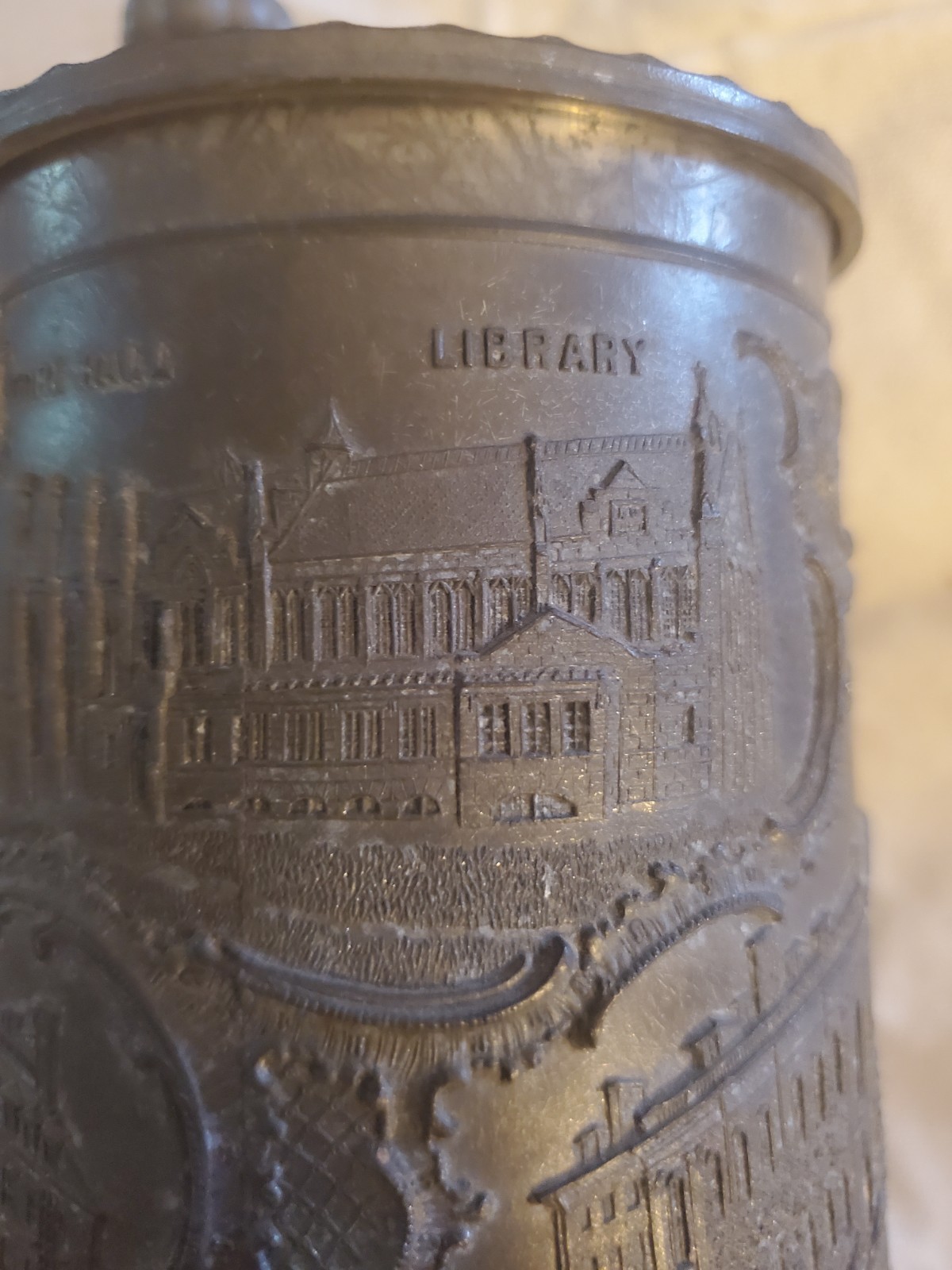 c1910 3D Harvard University Cup Souvenir Glass Bottom Pewter Stein Tankard Lid