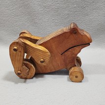 Handcrafted Wooden Frog Push Pull Along Childs Toys Articulated Back Legs Rustic