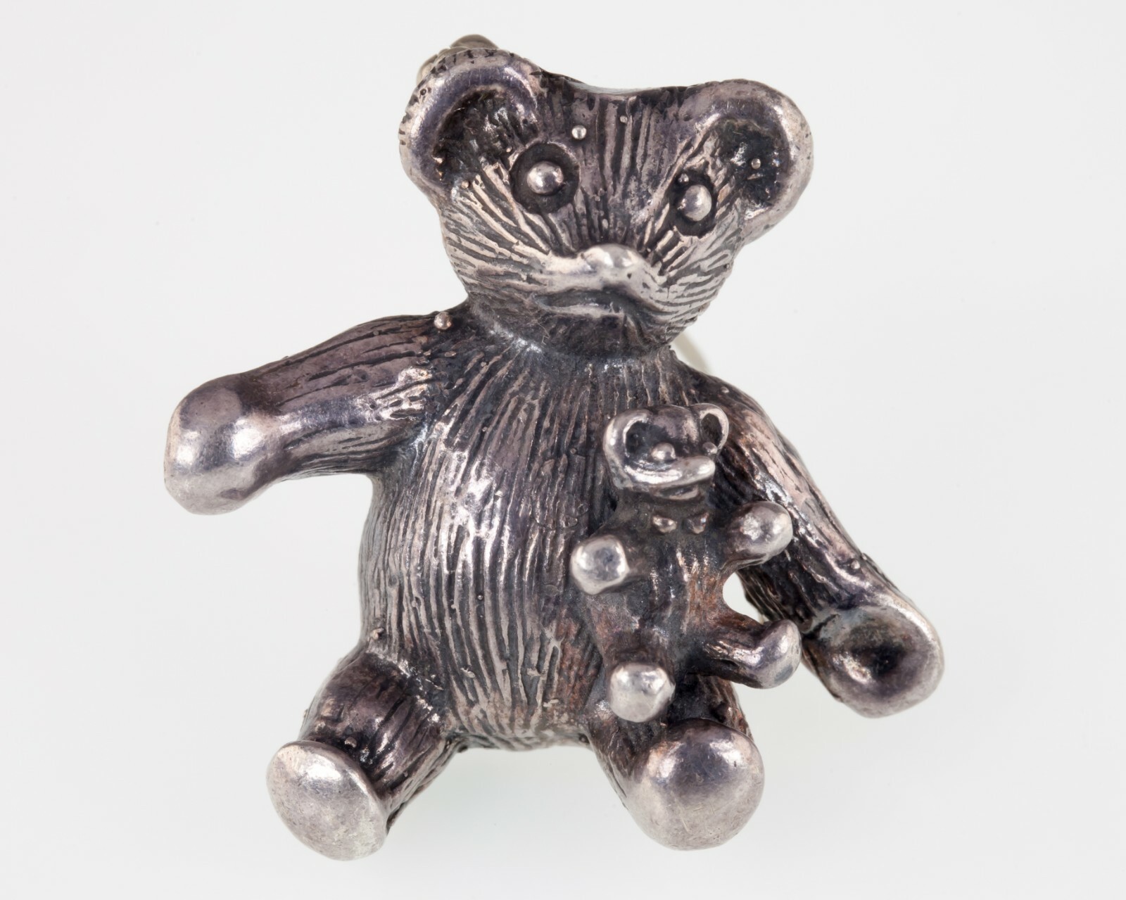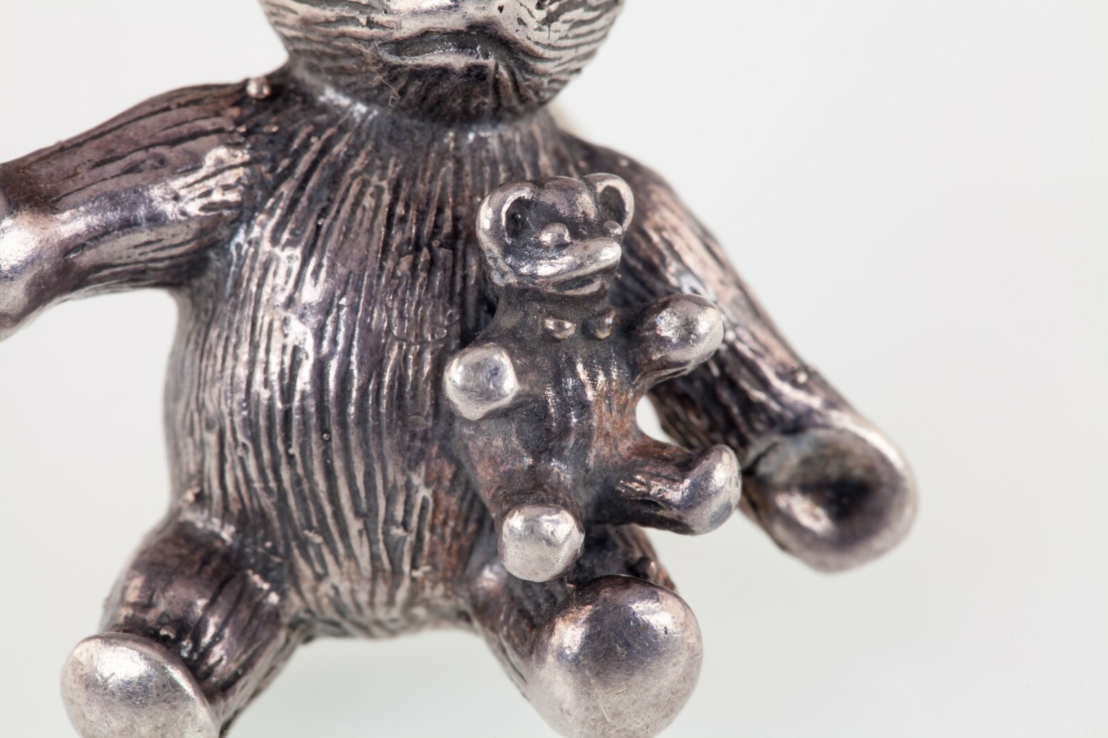 Sterling Silber Teddybar mit kleinerem Bar auf Schoß