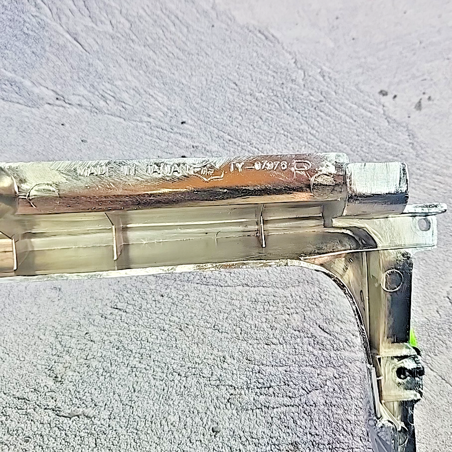 The Body Parts TO2513109 is a chrome and black right-hand headlight bezel designed to fit a Toyota Pickup. Made of plastic, this headlight bezel features easy installation with no drilling required and is waterproof. It comes with a California Prop 65 Warning for cancer and reproductive harm. Manufactured in Taiwan, this OE/OEM part number 5313189114 is a bolt-on attachment type suitable for a front right placement on the vehicle.