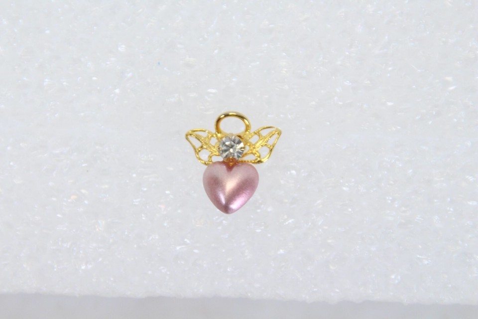 Heart Pin Brooches Pins Gold Tone With Bow and Pink w/Angel Wings Lot of 2