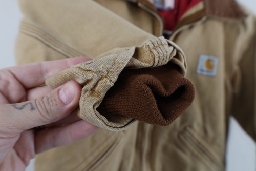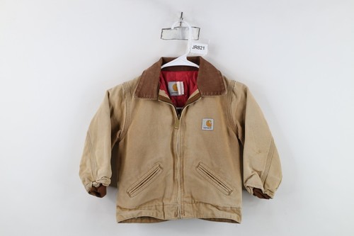 Vintage 90s Carhartt Boys 4 Distressed Spell Out Detroit Jacket Duck Brown USA
