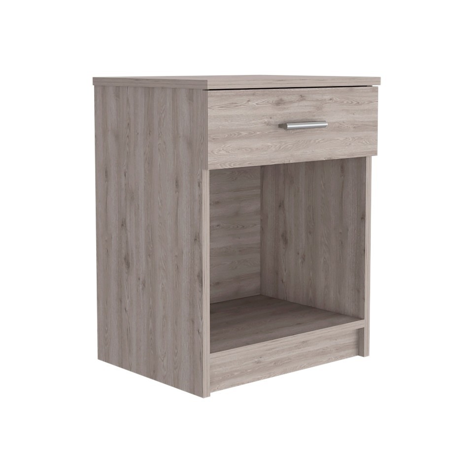 Modern Nightstand w/ Drawer & Shelf - Light Gray