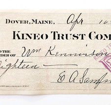 1915 Kineo Trust Company Bank Check E.A. and 33 similar items