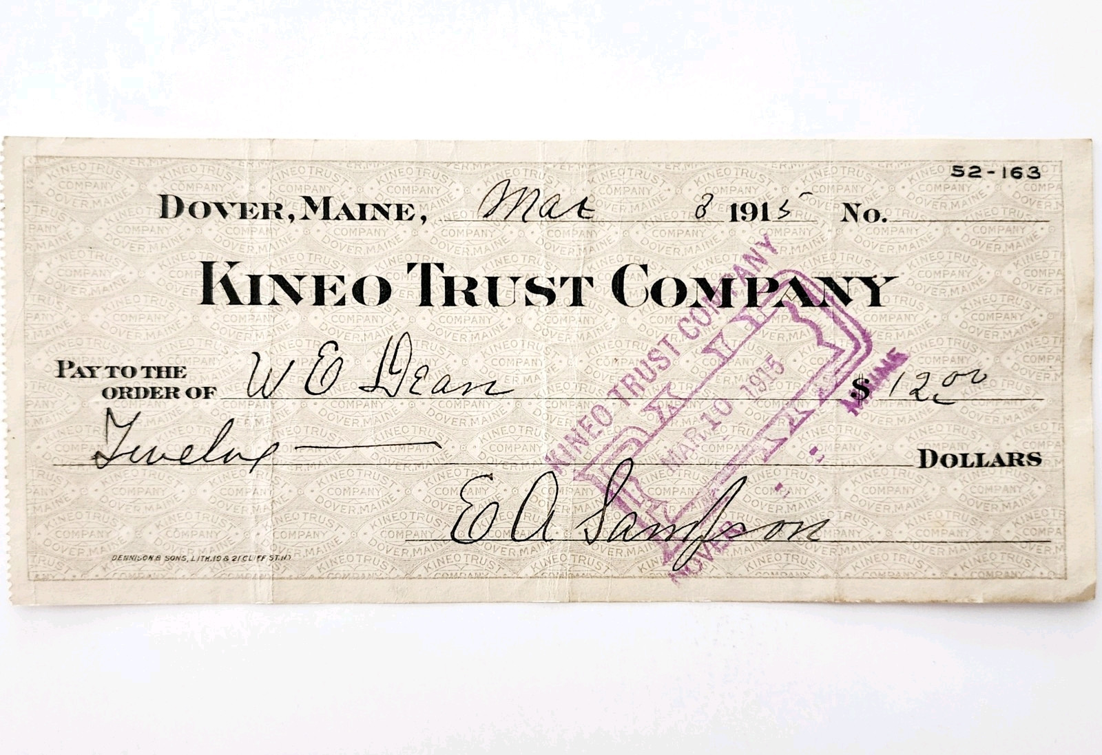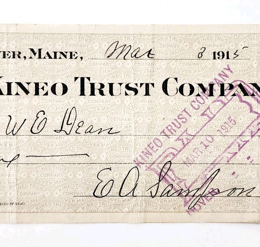 1915 Kineo Trust Company Bank Check E.A. Sampson Dover Maine Signed CHX15