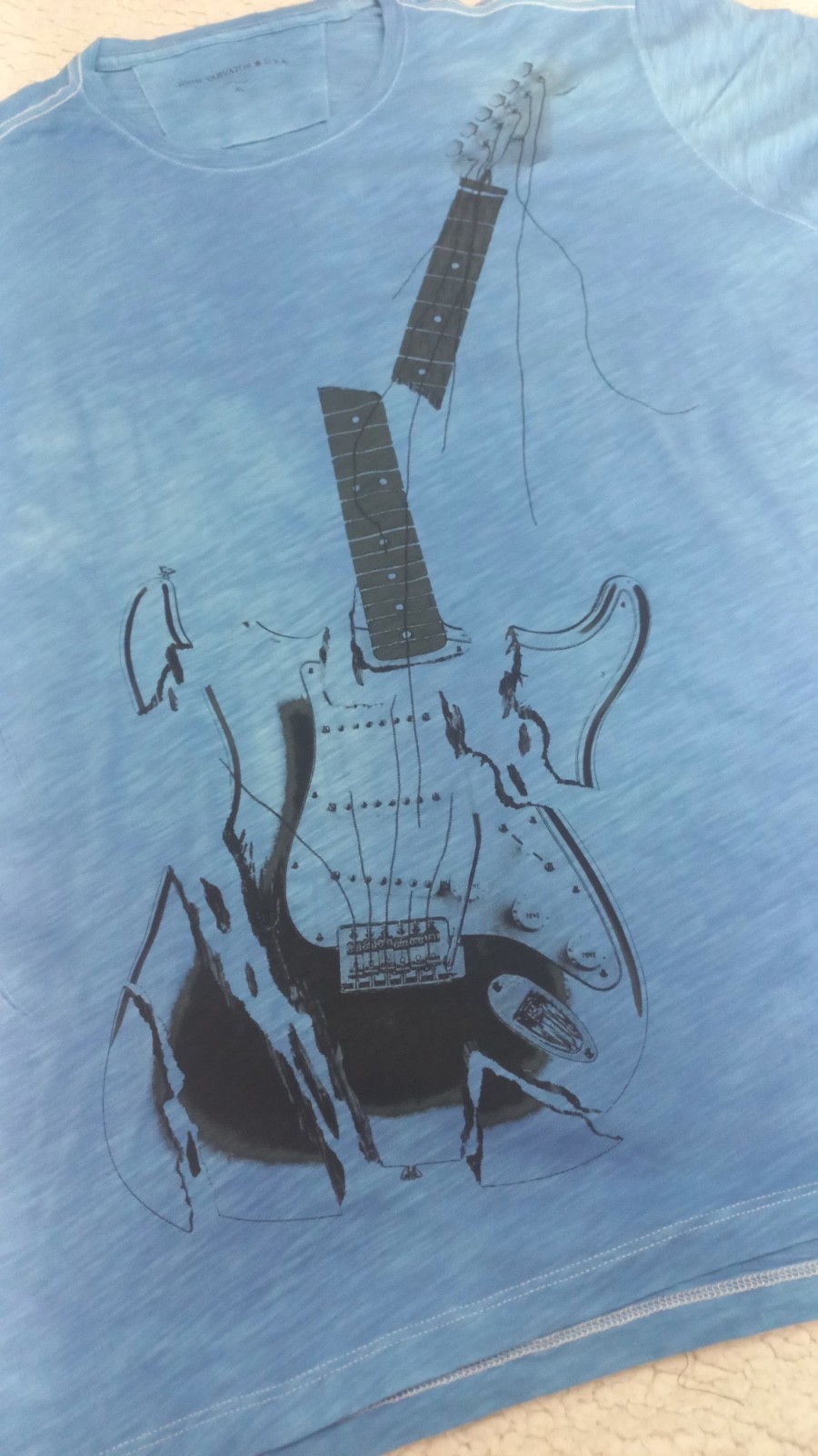 John Varvatos Star USA Men's Stone Wash Blue Broken Guitar Graphic Tee XL NWOT