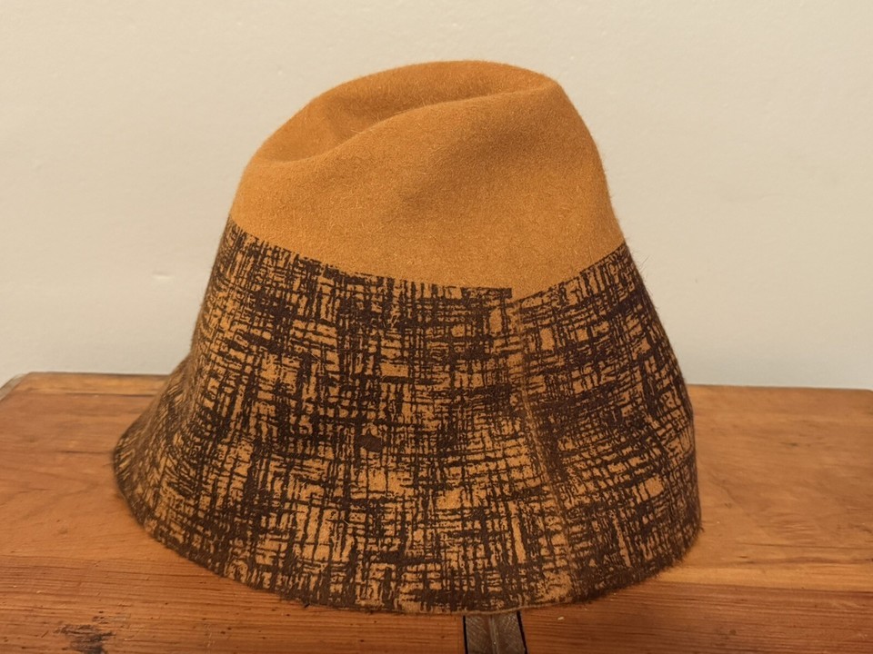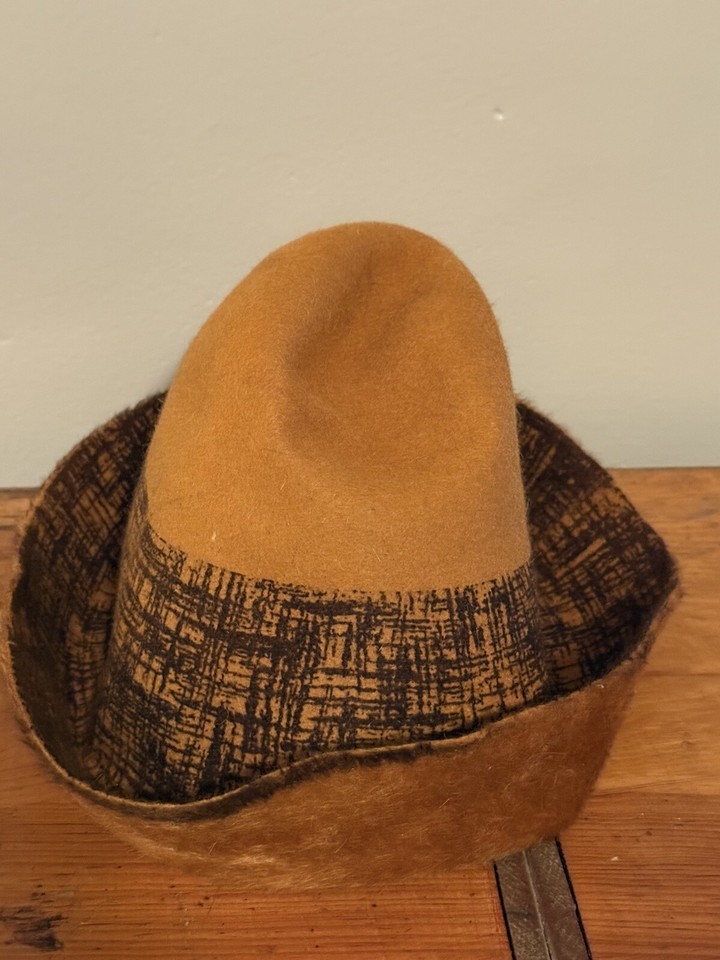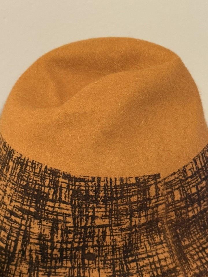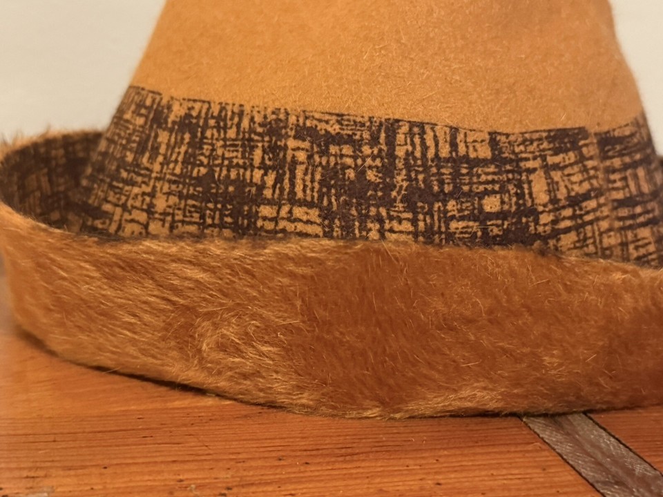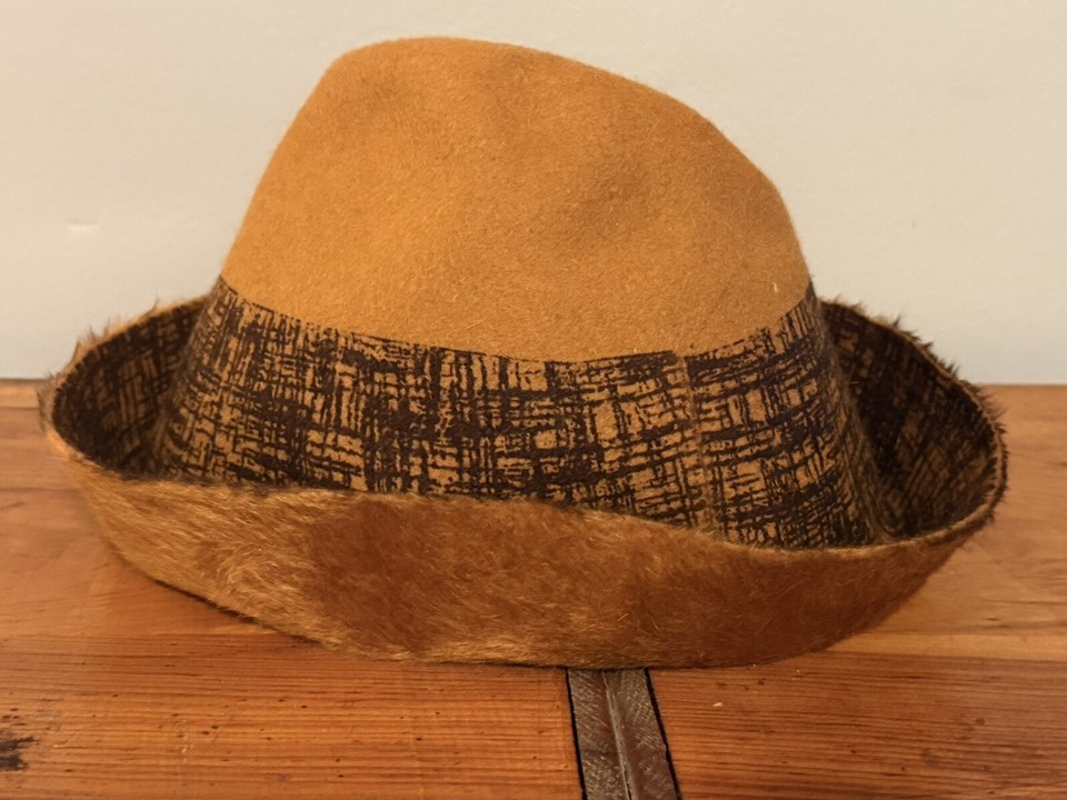 Vintage Handmade Fedora Hat Felt Faux Mohair Caramel Brown Women’s EUC